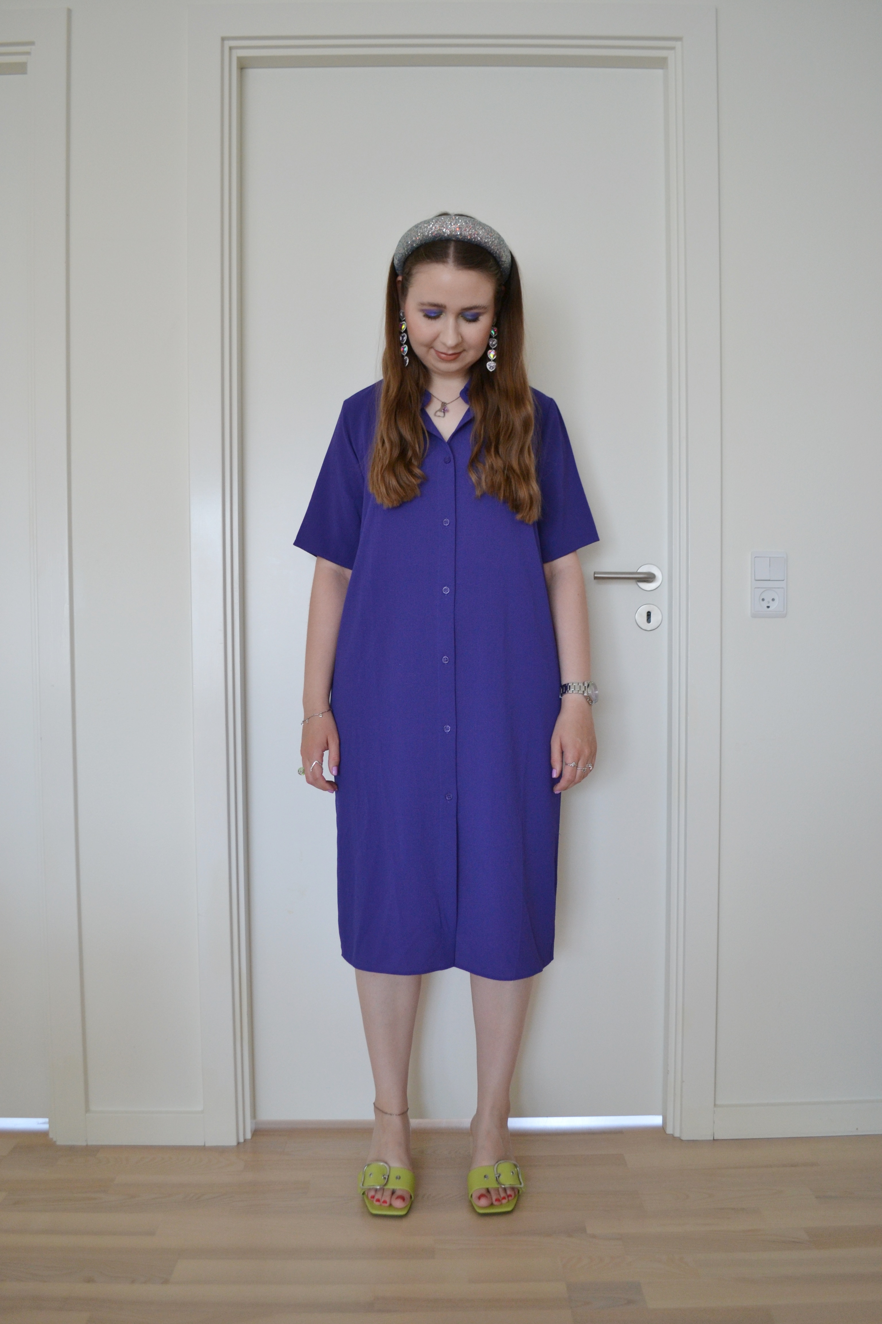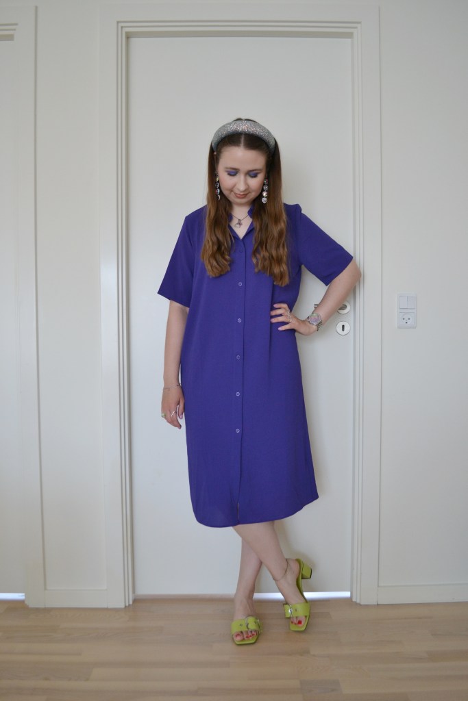 Here’s what I wore Thursday August 1 2024. So now I’m back to where I left off, before I started posting my Christmassy looks. I still have lots of outfits and make-up looks from August to mid November to post, and I’ll attempt to post the outfit and corresponding make-up on the same day, when I have to time to do so. This look is super simple, but really cute. Indigo and lime green is a lovely colour combo, don’t you think?