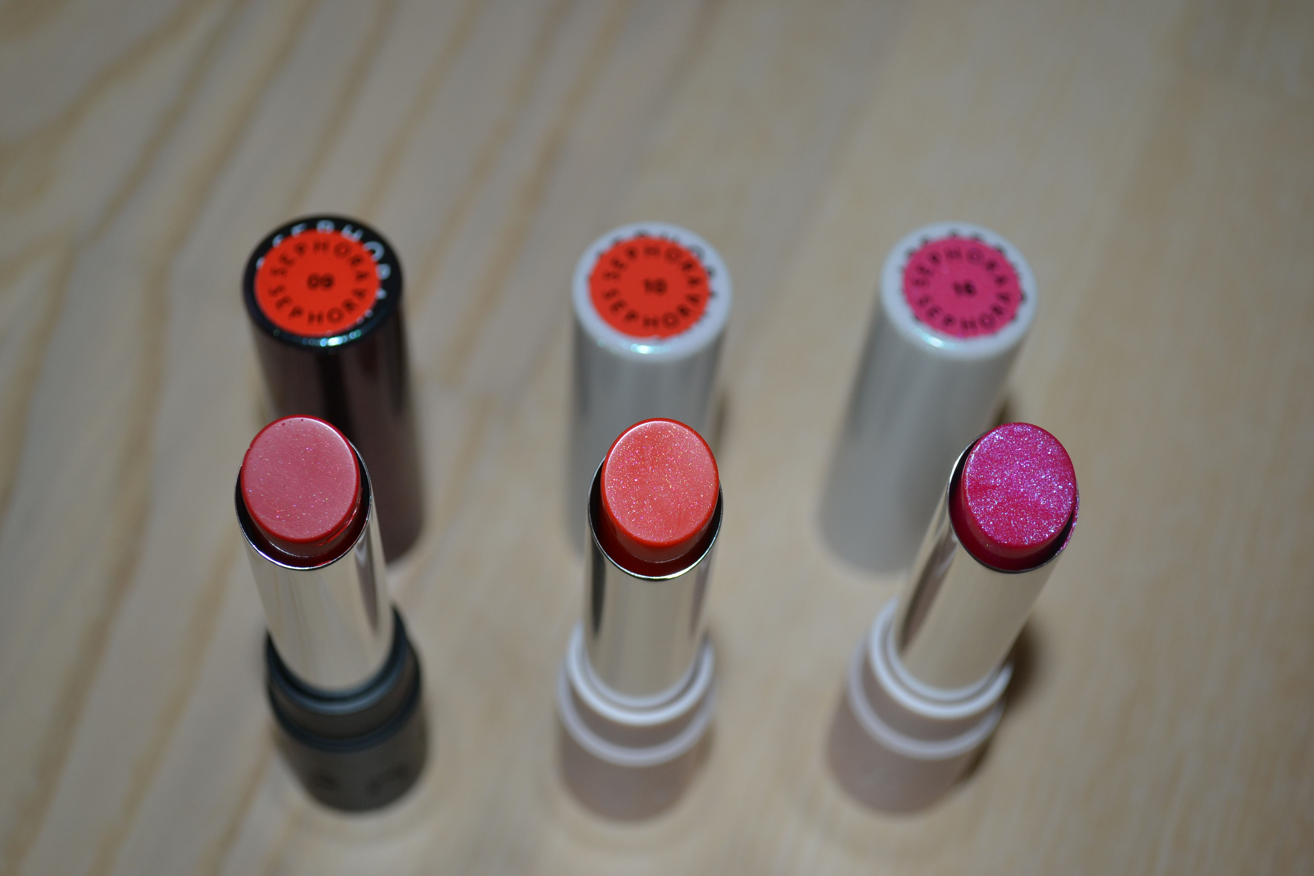 I’d been wanting to try the Sephora Collection About That Shine lacquer shine and sheer shine lipsticks, so I got the lacquer shine lipstick in the shade 09 Volcanic Lava and two of the sheer shine lipsticks in the shades 10 Radiant Flame and 16 Electric Glitter. Both formulas are very lovely.