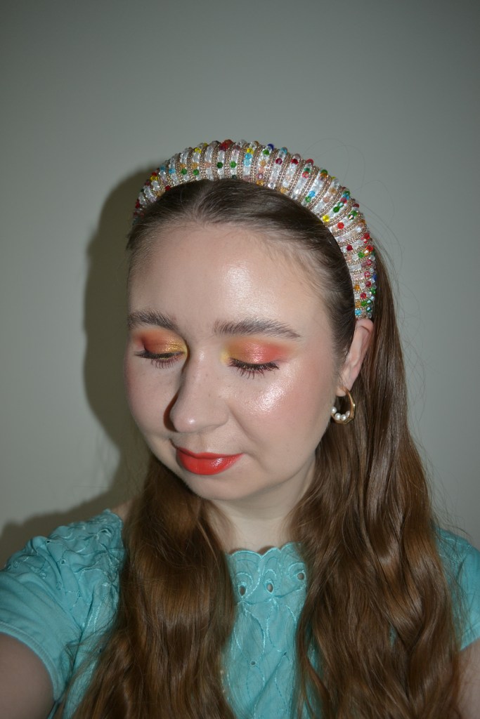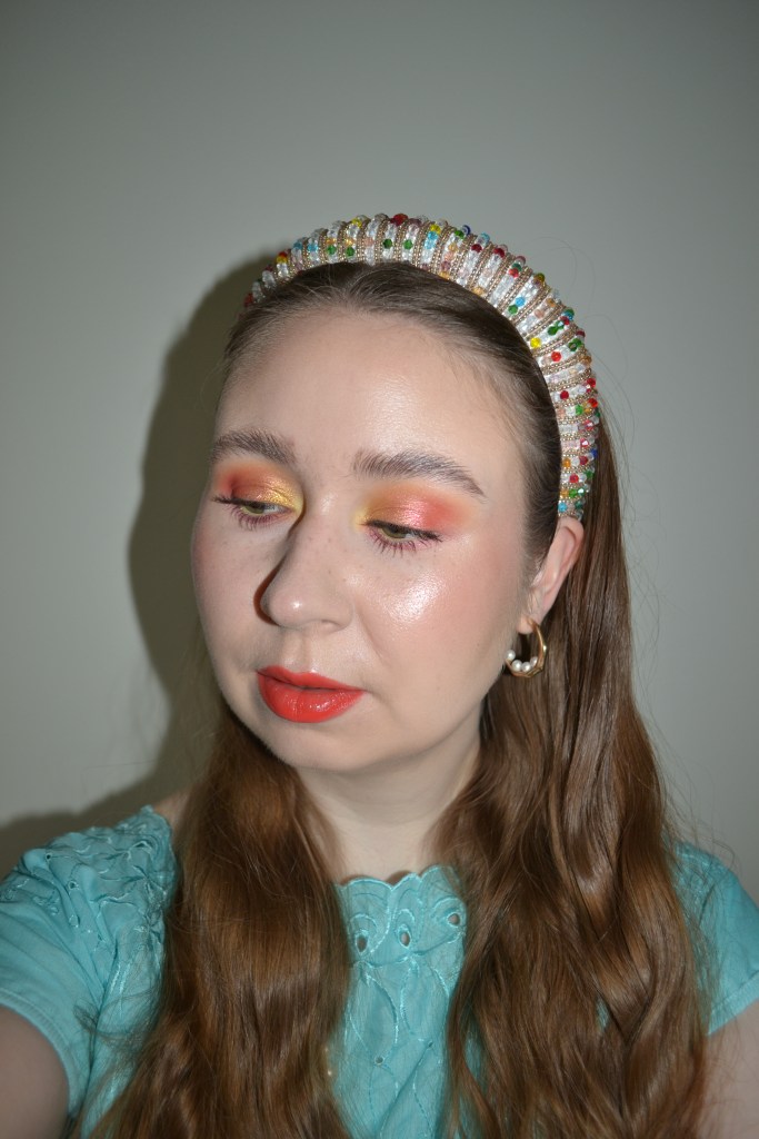 Here’s the make-up I wore with this outfit. I usually don’t wear warm, fiery make-up looks like this very often, but last summer I was a bit more drawn to these types of warm colours.