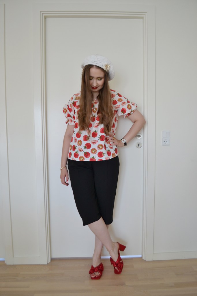 (Beret – H&M, top – Pieces, capris – NA-KD, heels – Forever New)