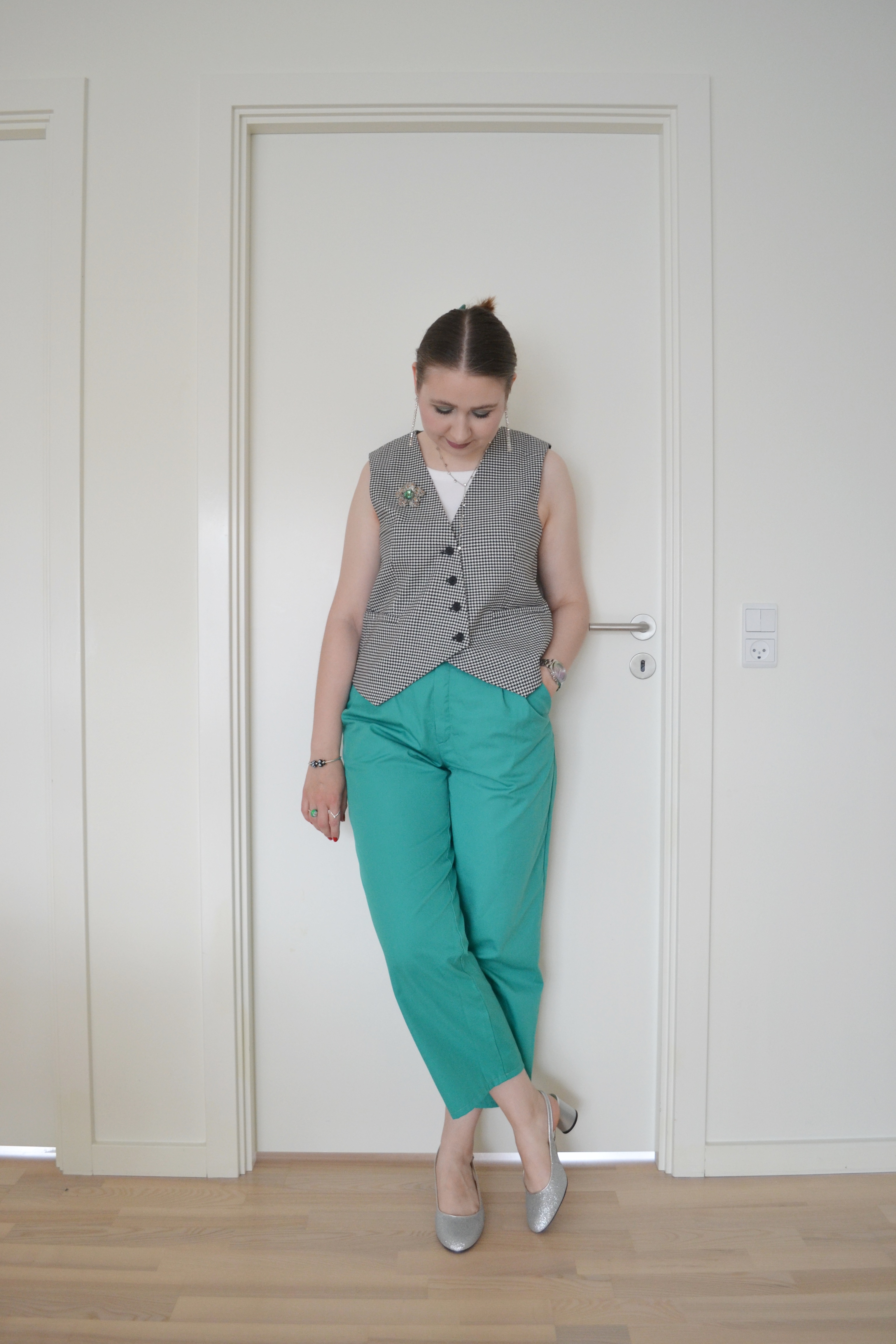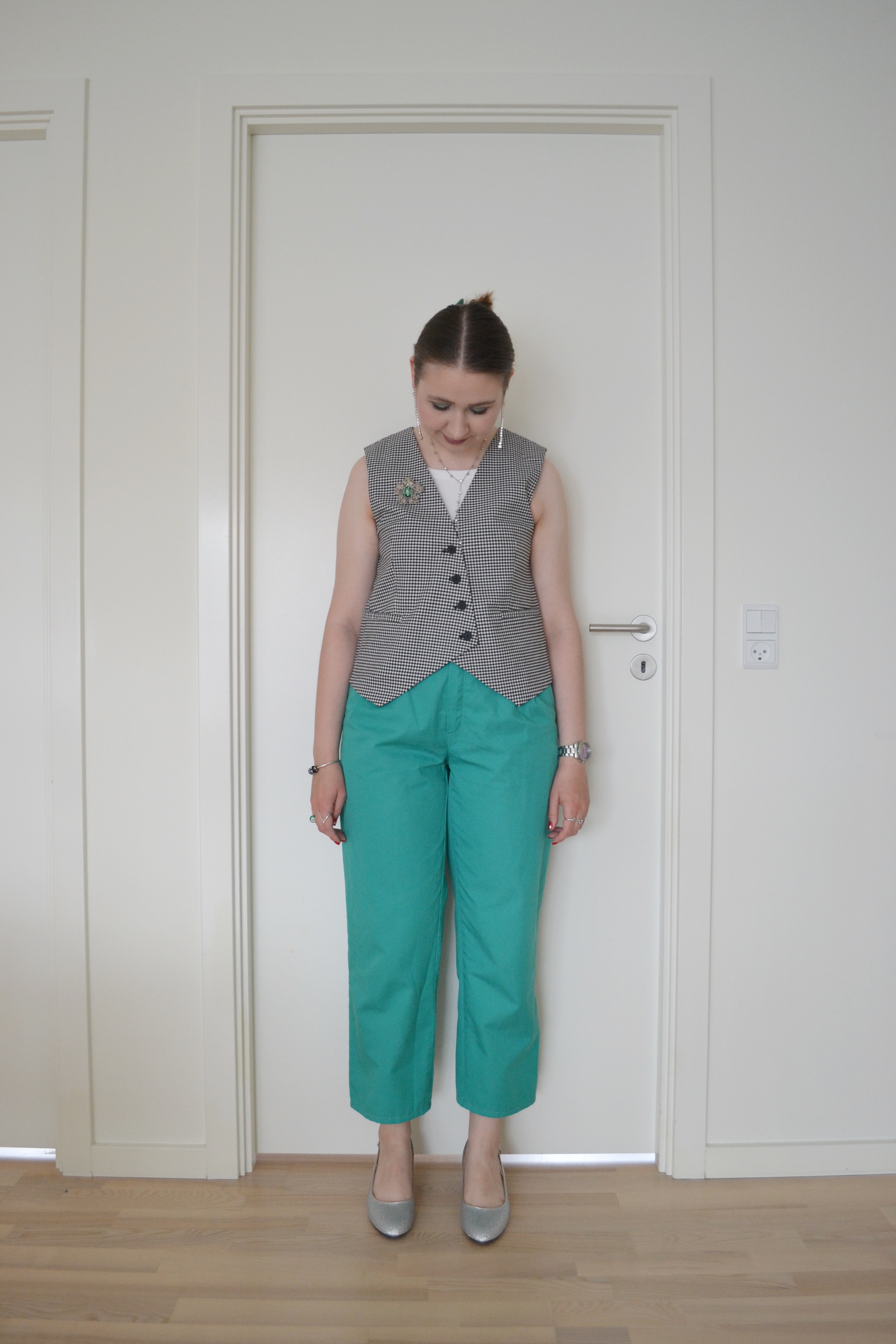 (Waistcoat – Asos Design, top – H&M, trousers – second hand, heels – & Other Stories)