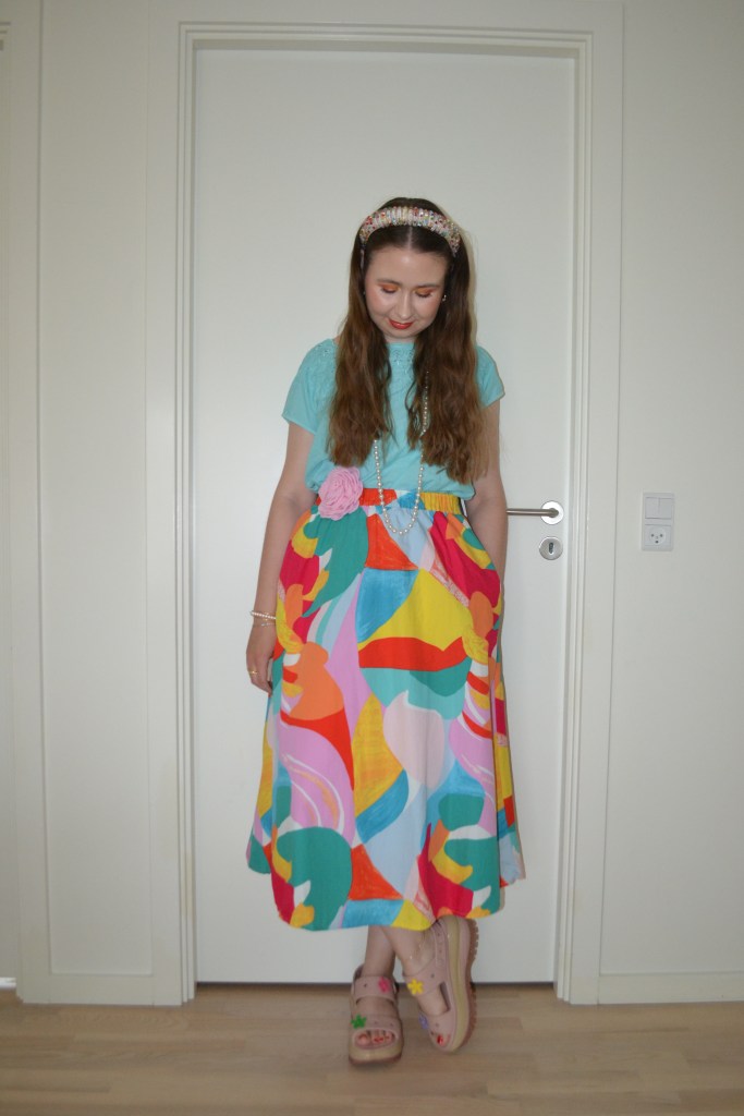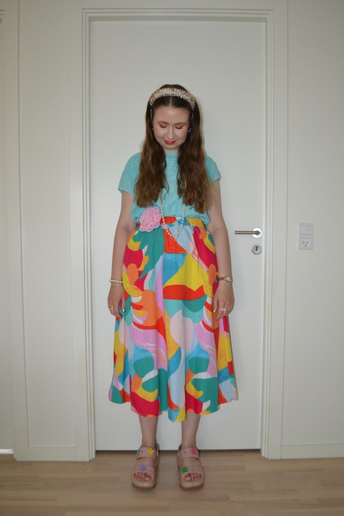 Here’s the make-up I wore with this outfit. I’m wearing the Cosmic Brushes Cooltrals palette on my eyes, and as you can see, you can create a very intense blue look with that palette even though the name of the palette might suggest otherwise.