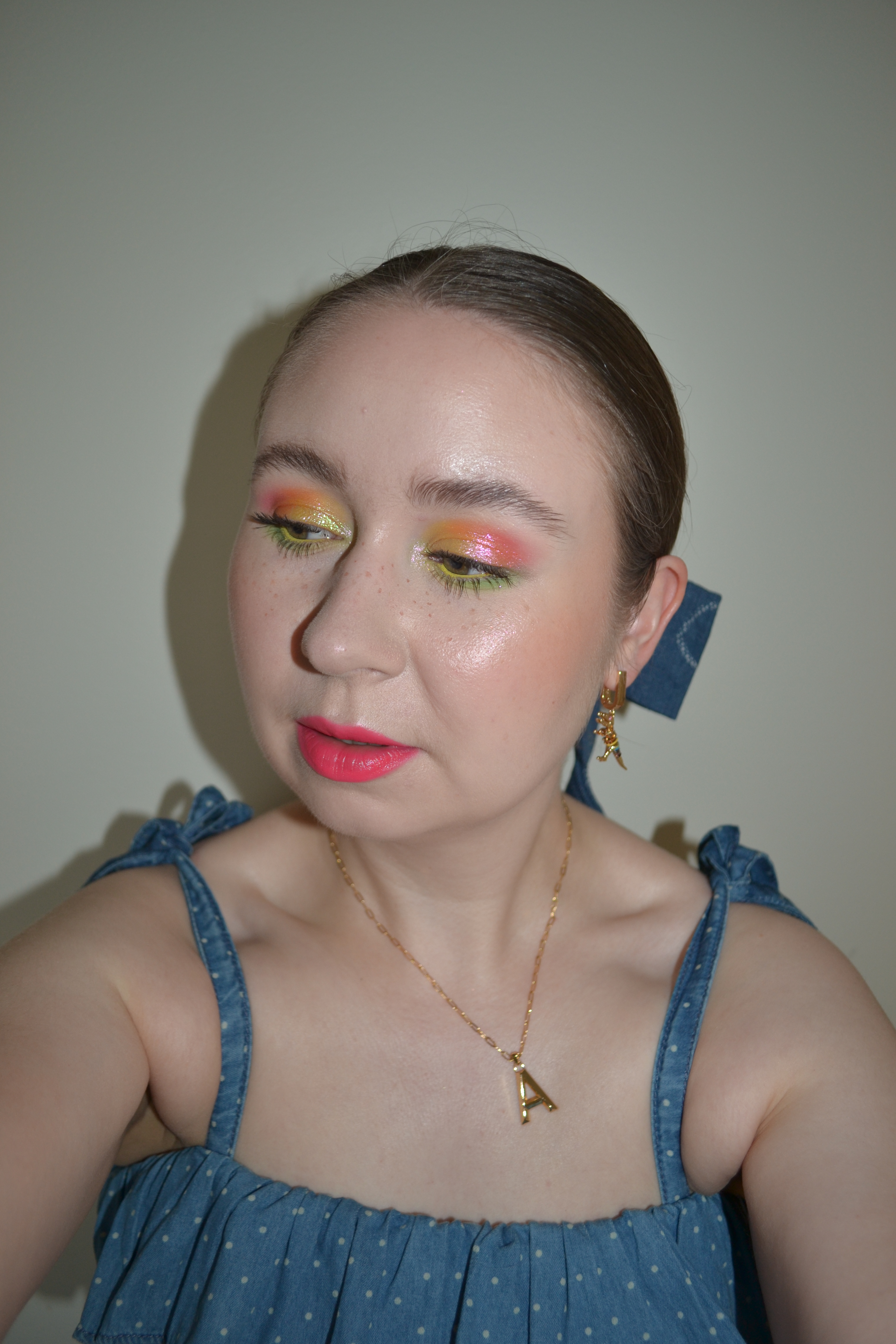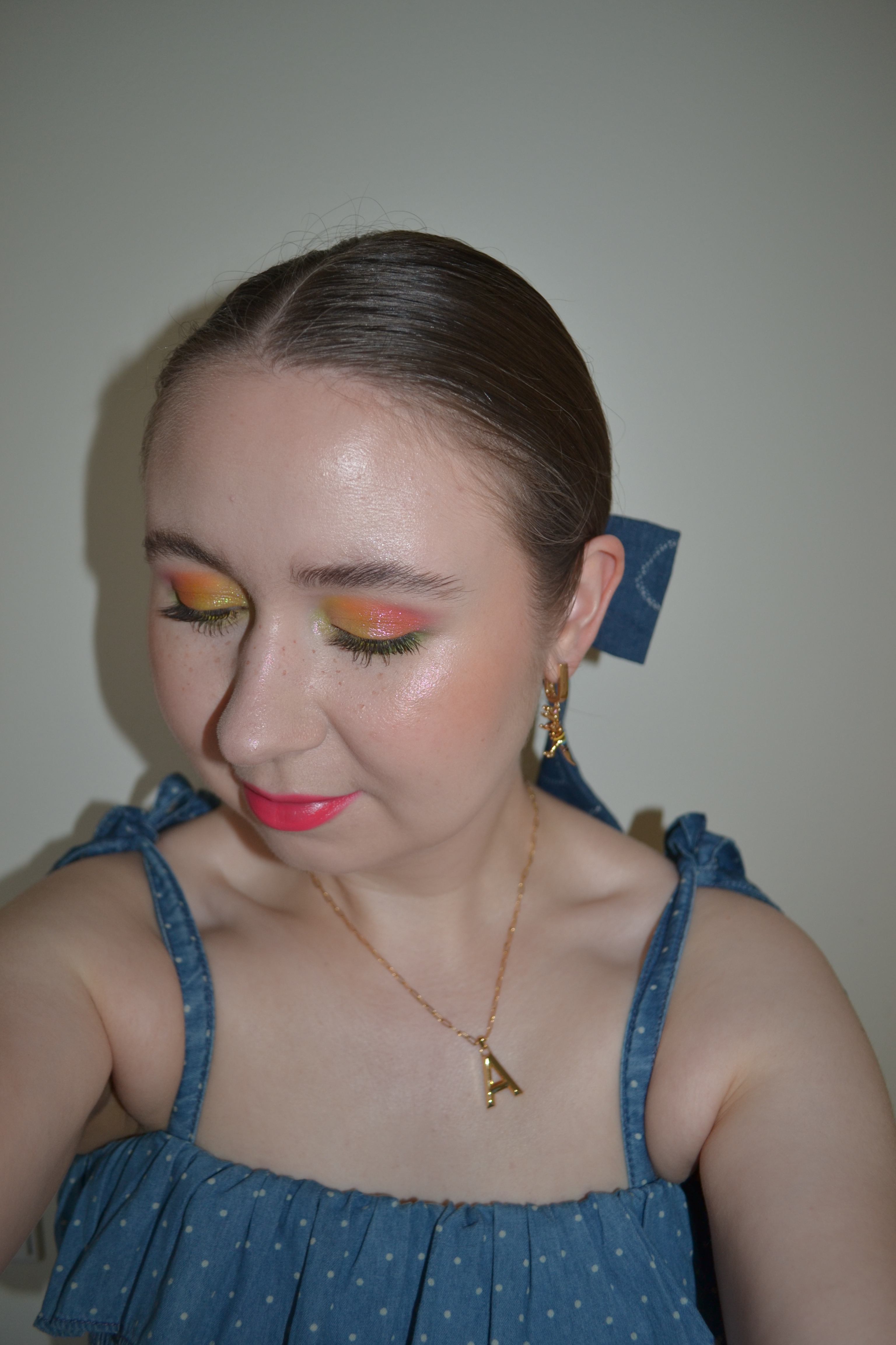 Here’s the make-up I wore with this outfit. I wearing the Simply Posh Cosmetics Citrus Punch palette on my eyes, and it might have the ultimate summer colour story.