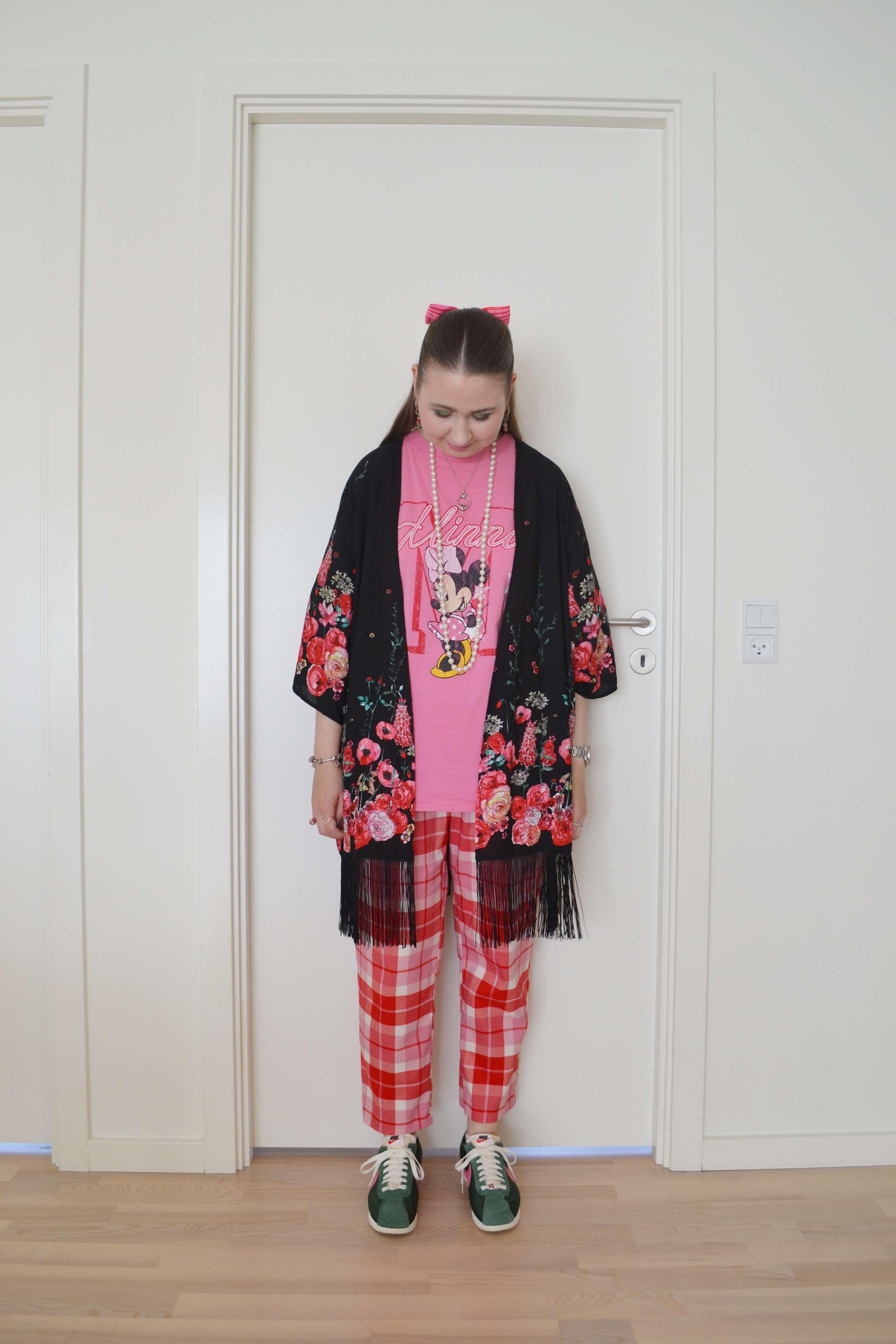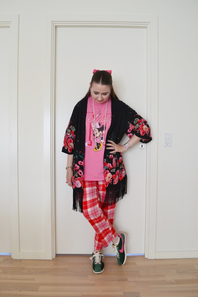 (Kimono + T-shirt – H&M, trousers – Monki, sneakers – Nike)