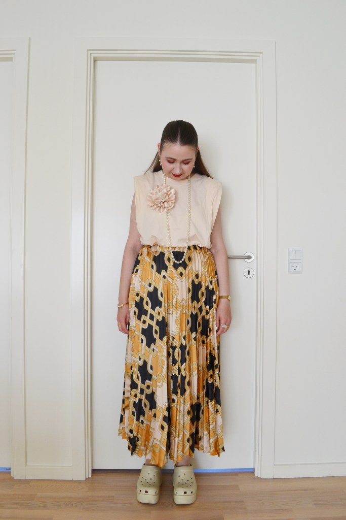Stunning neutral skirt Posted on February 16, 2025 by Mucha-Lucha Here’s what I wore Wednesday September 18. You know I’m not a huge fan of neutrals, but this skirt is just so stunning, and for an outfit with a neutral colour scheme, I quite like it. (Top + skirt – H&M, flower pin – Black Colour, shoes – Crocs) Share this: Click to share on X (Opens in new window) X Click to share on Facebook (Opens in new window) Facebook Like Loading... Related