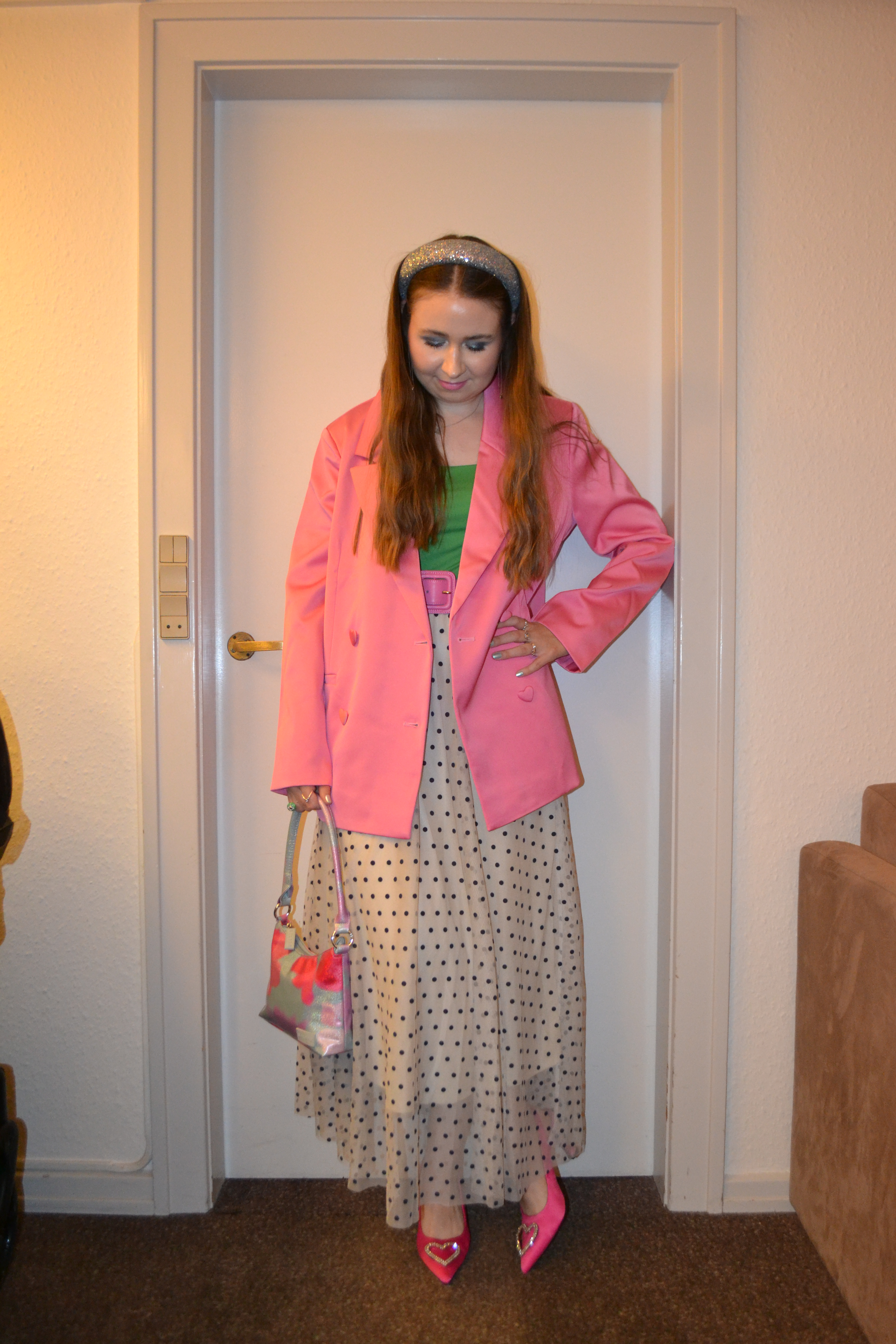 In the evening Posted on February 20, 2025 by Mucha-Lucha Here’s what I wore Friday September 20 in the evening. I really wanted to wear this polka dot tulle skirt, and I think it looked really cute paired with pink and green. (Blazer – Crás, top + belt – H&M, skirt – Only, bag – Silfen, heels – Monki) Share this: Click to share on X (Opens in new window) X Click to share on Facebook (Opens in new window) Facebook Like Loading... Related