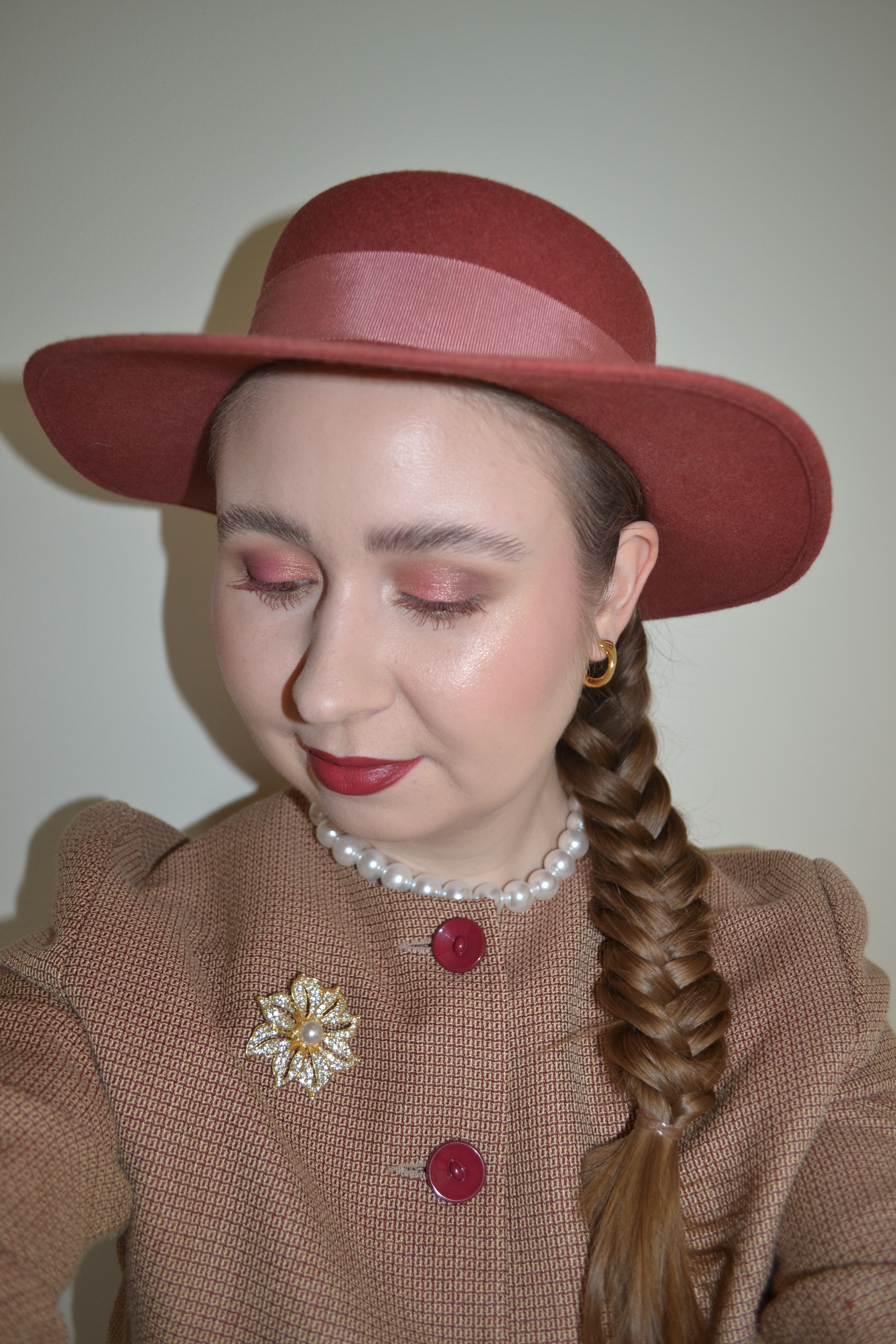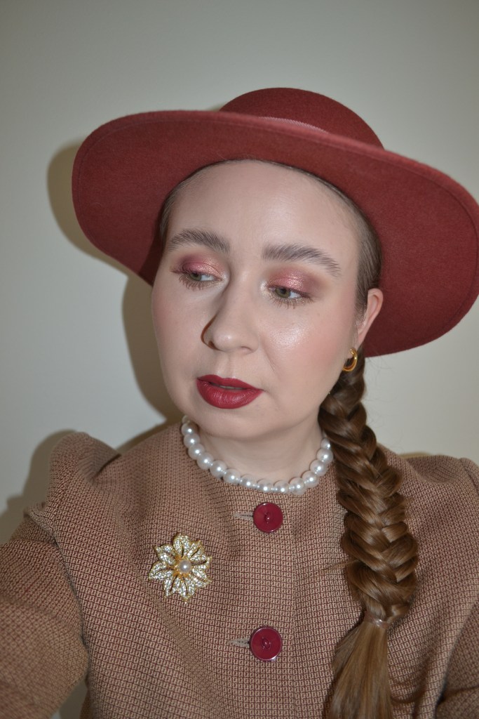 Here’s the make-up I wore with this outfit. I’ve never worn a rosewood-coloured mascara before, but I think it kind of works with this look.
