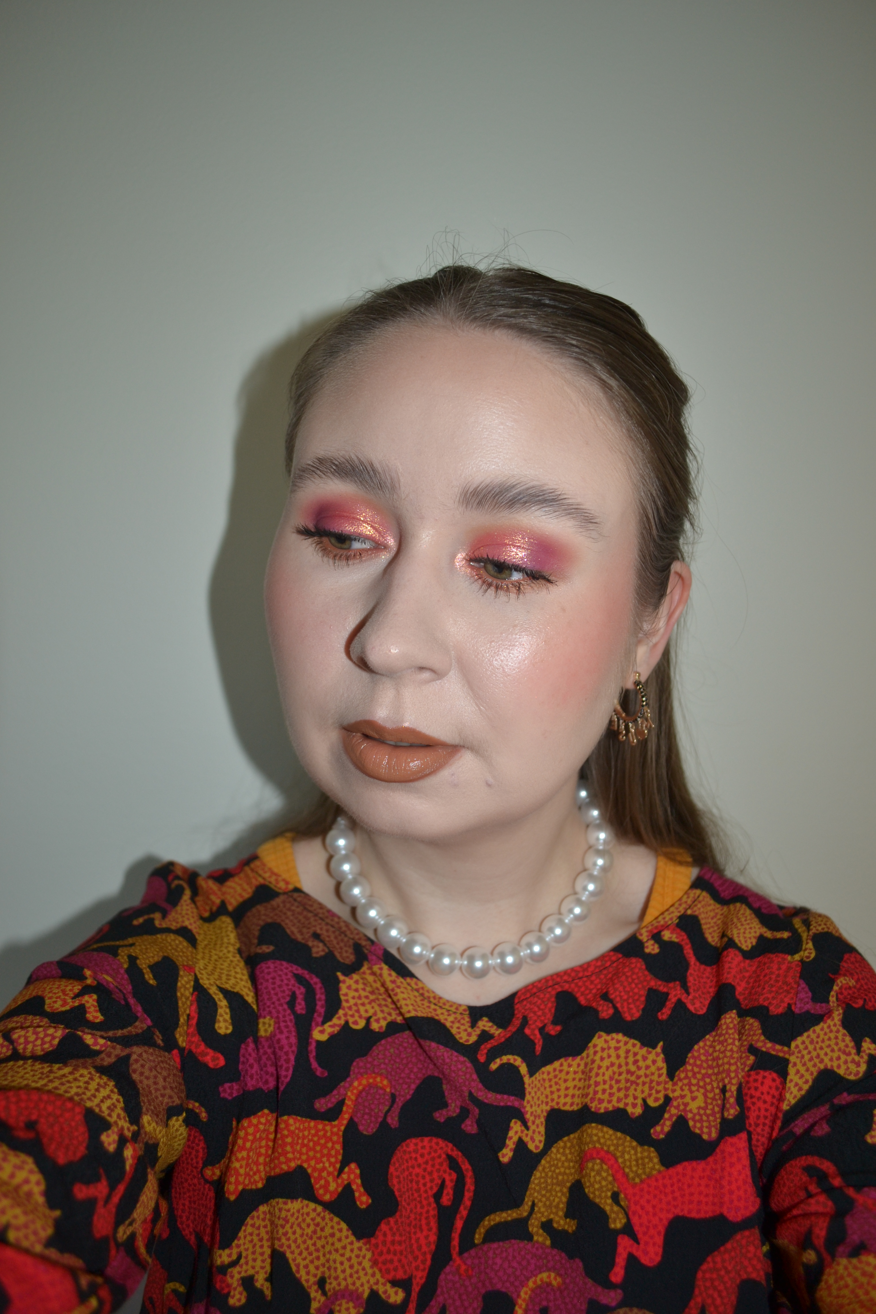Here’s the make-up I wore with this outfit. I love a yellowy brown lip, and this lip liner and lipstick combo is so good!