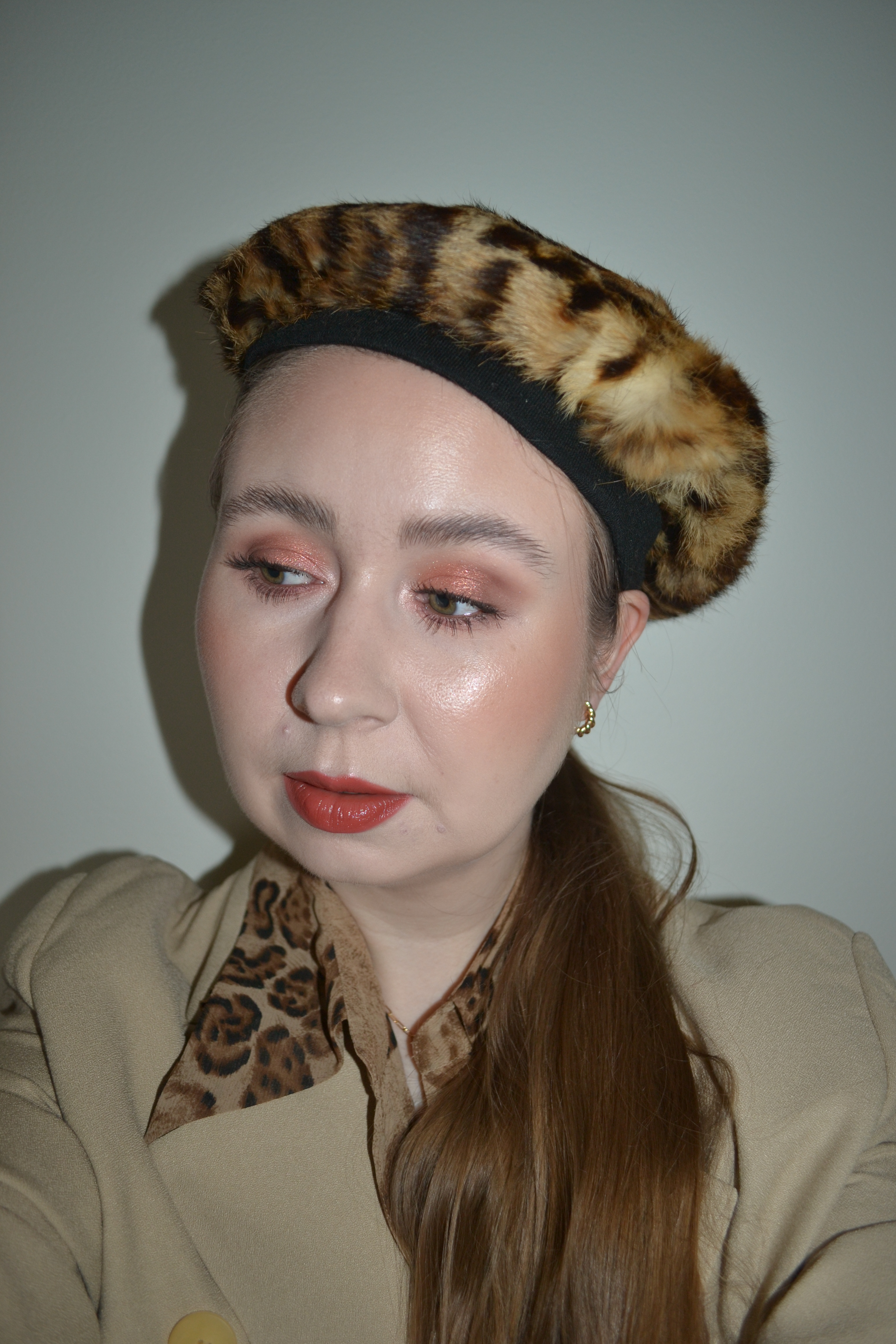 Here’s the make-up I wore with this outfit. I don’t love this eye look; it’s a little too subtle for my liking. I think the lips and cheeks look nice though.