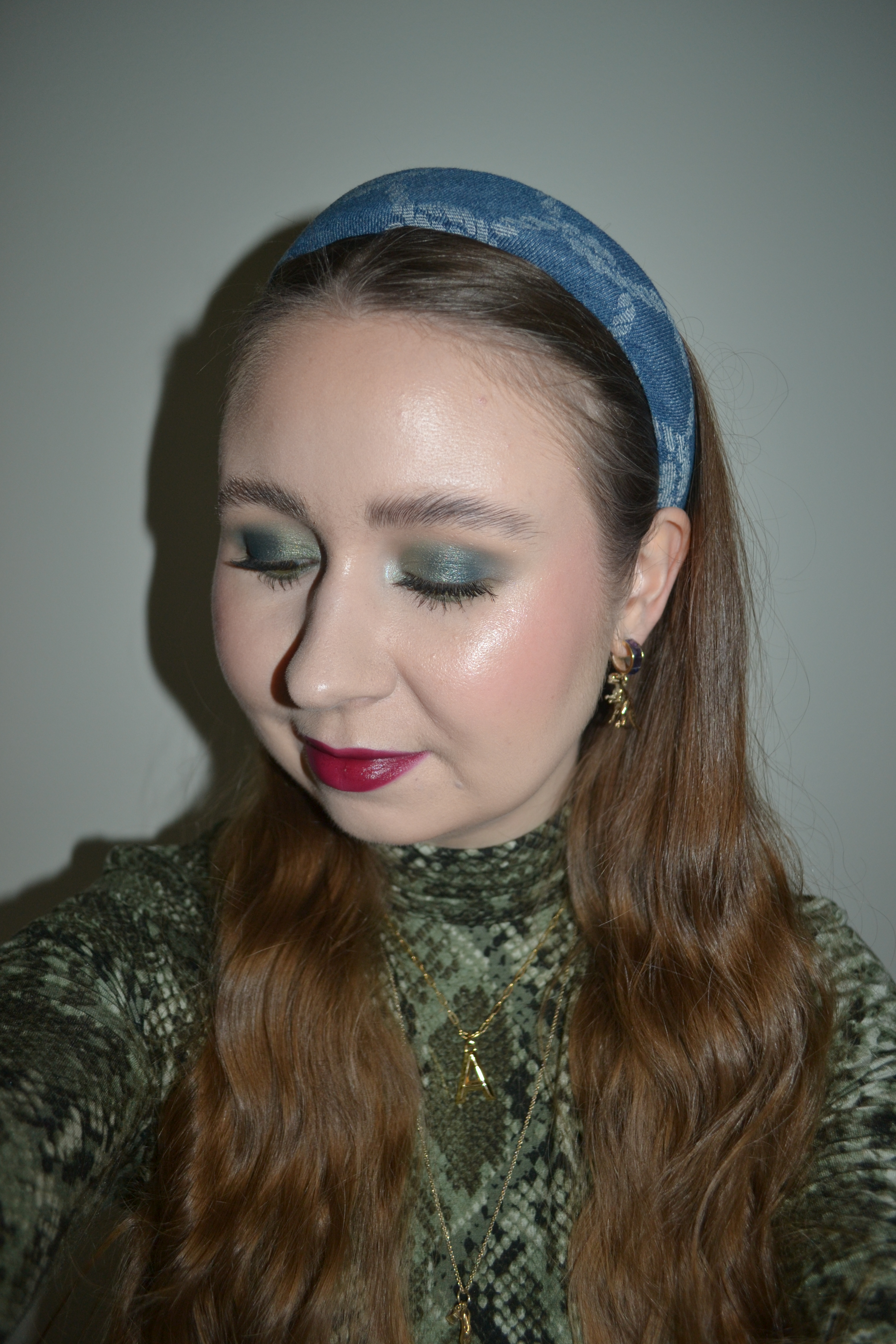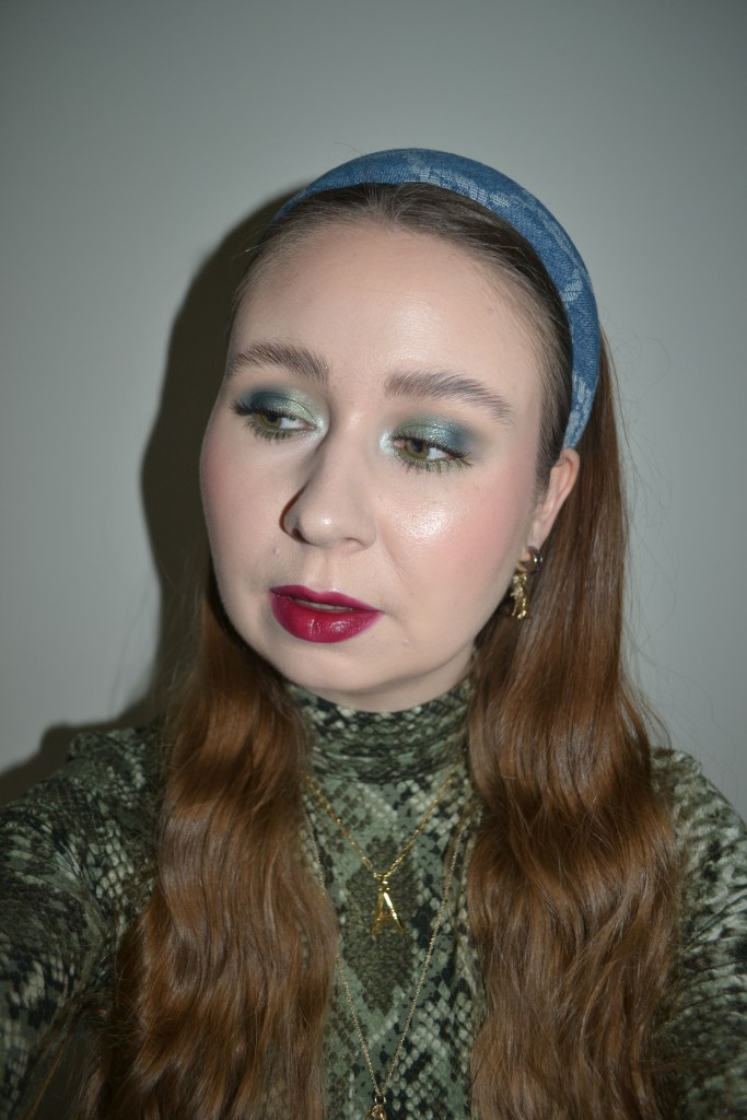 Here’s the make-up I wore with this outfit. I really like this colour combo; the dark green eyes with the berry lip is such a pretty look.