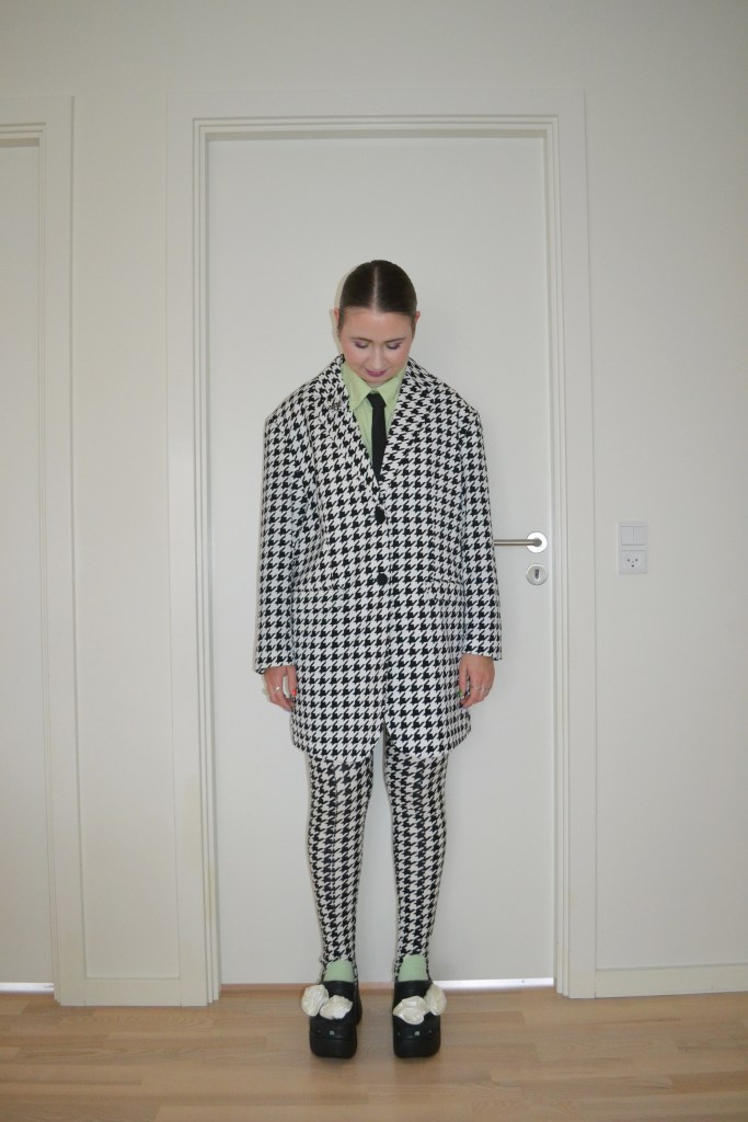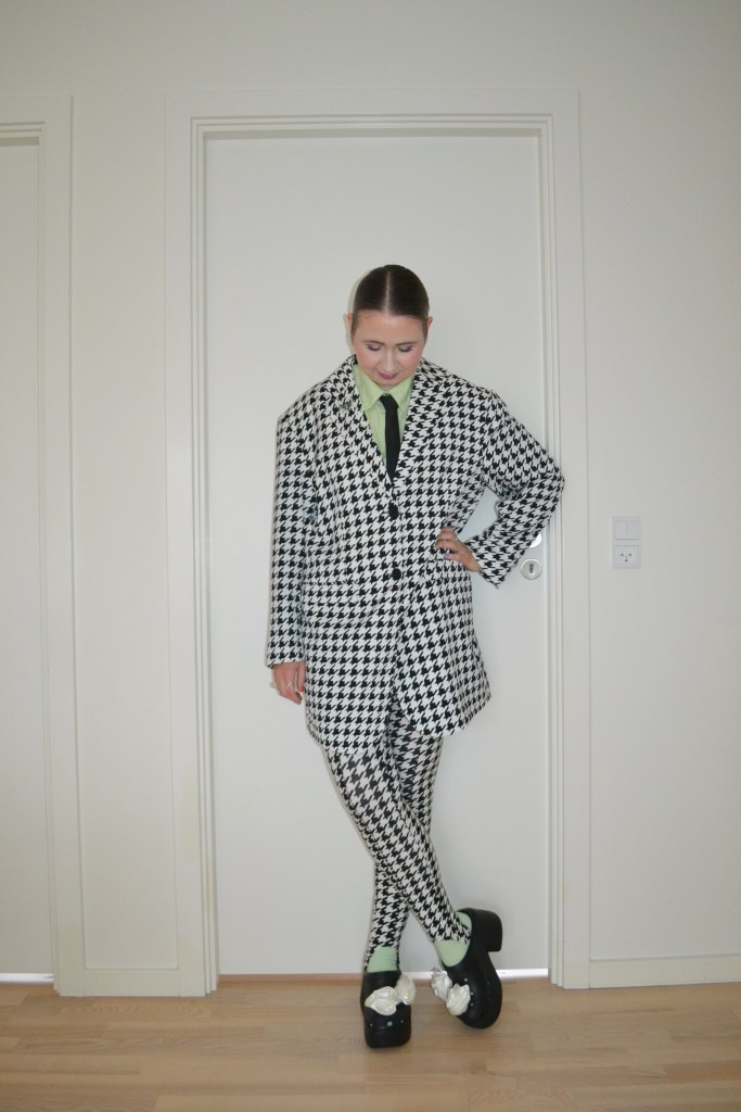 (Blazer + shirt + leggings – Monki, tie – vintage, socks – H&M, shoes – Crocs)