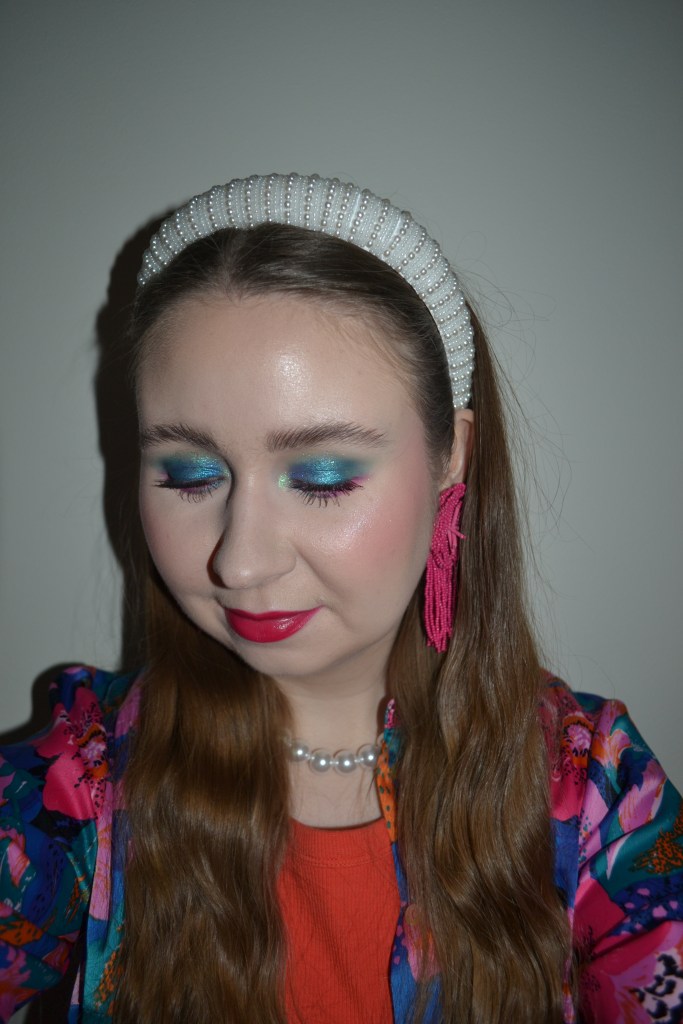 Here’s the make-up I wore with this outfit. I obviously wanted to wear a very colourful make-up look to go with my very colourful outfit, so I brought out the Ensley Reign Strawberry Moon palette, which I really wanted to use again, and I think the eye look turned out so fun.