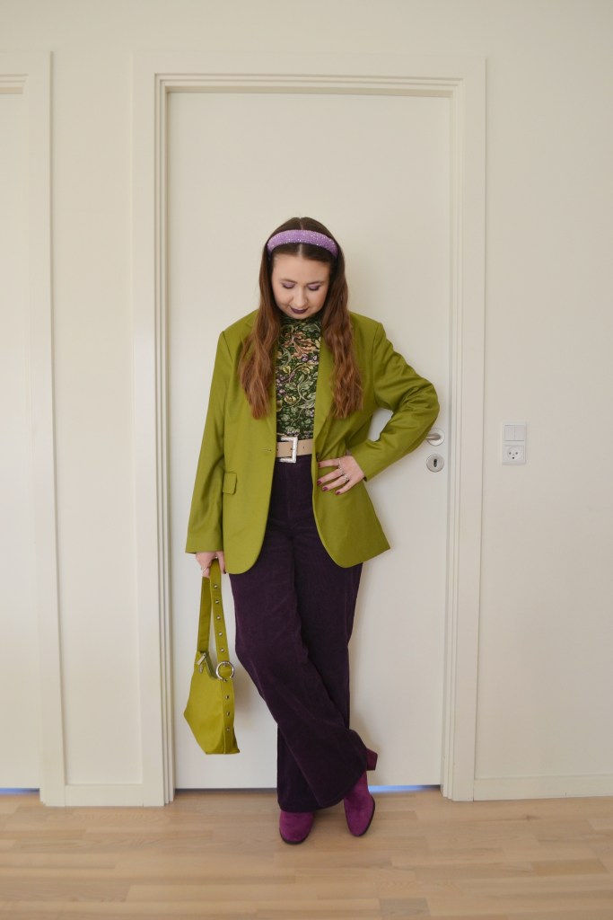 Here’s what I wore Saturday January 11. I’d had this outfit in mind for quite a while, and I thought it would be perfect for a lunch date. You know I love to wear green and purple together, but specifically olive green and dark purple is such a pretty combo.