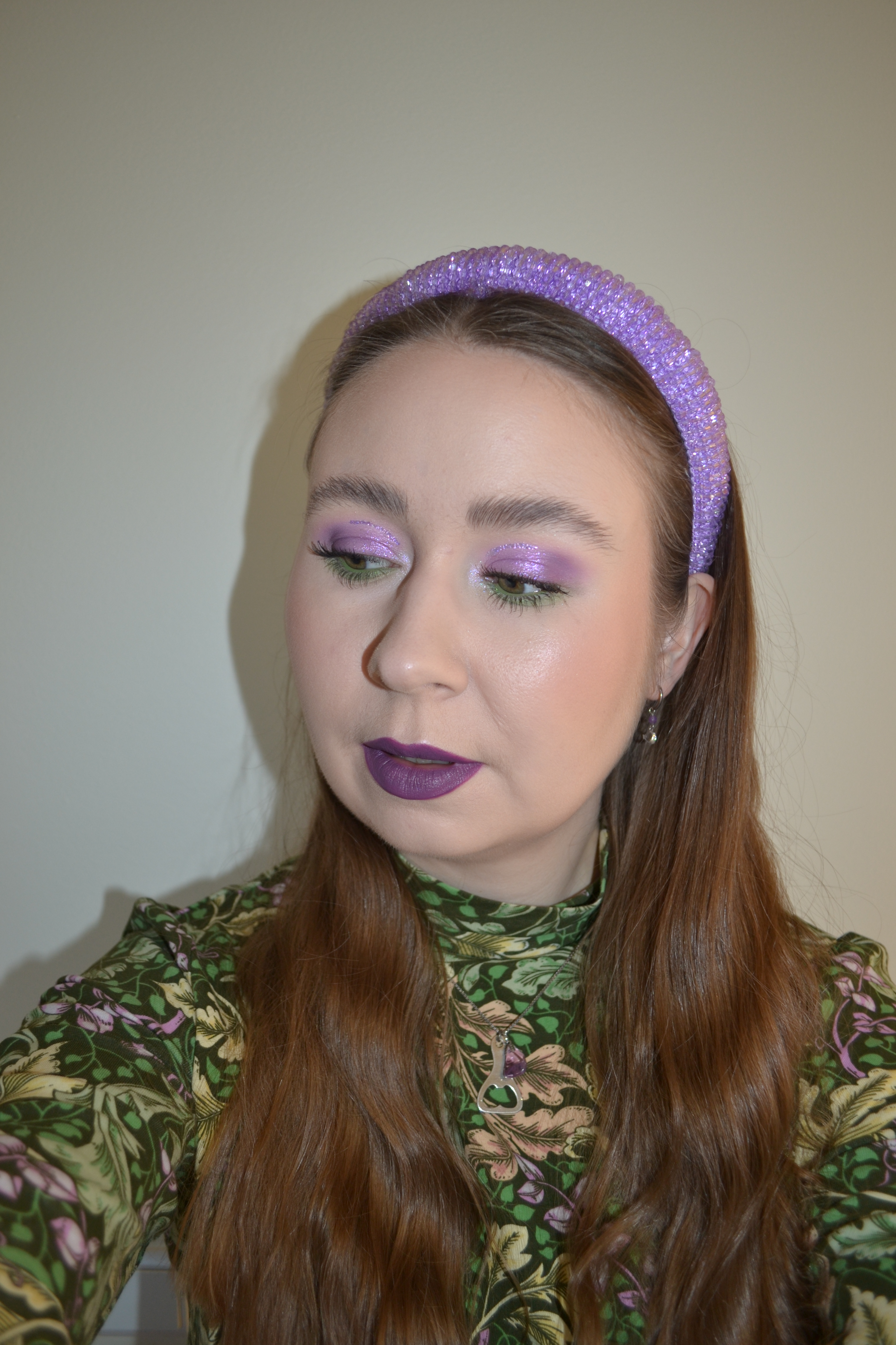 (Base: primer – e.l.f. Cosmetics Liquid Poreless Putty primer, foundation – L’Oréal Paris True Match Nude plumping tinted serum (shade: 0,5-2 Very Light), concealers – e.l.f. Cosmetics Putty Color-Correcting Eye Brightener (shade: Fair) + Huda Beauty #FAUXFILTER Luminous Matte liquid concealer (shade: 1.3G Marshmellow), powders – Laura Mercier Translucent Loose Setting Powder Tone Up in Rose + e.l.f. Cosmetics Halo Glow setting powder in Light. Face make-up: bronzer – Whats Up Beauty Cheeque Terre bronzer in 10 Light, blush + highlighter – Dior Rouge Blush & Glow duo face palette in 287 Dioramour. Eye make-up: base – MAC Pro Longwear Paint Pot in Painterly, eyeshadows – Essence eyeshadow in 20 Cream + Blend Bunny Cosmetics x Robert Welsh Divination palette (shades: Affirmation + 8 Ball + Tea Leaf + Psychic + Vision + Number 7), mascaras – MAC Extended Play Gigablack Lash mascara + Blend Bunny Cosmetics Omni Lash lash perfecting mascara, eyeliners – Unearthly Cosmetics Immortal liquid eyeliner in Tears + Oden’s Eye Solmåne gel liner in 005 Avocado. Eyebrows: MAC Shape + Shade brow tint in Taupe + Anastasia Beverly Hills Brow Freeze. Lips: MAC Liptensity lip pencil in Hellebore + MAC Beach Nut lipstick)