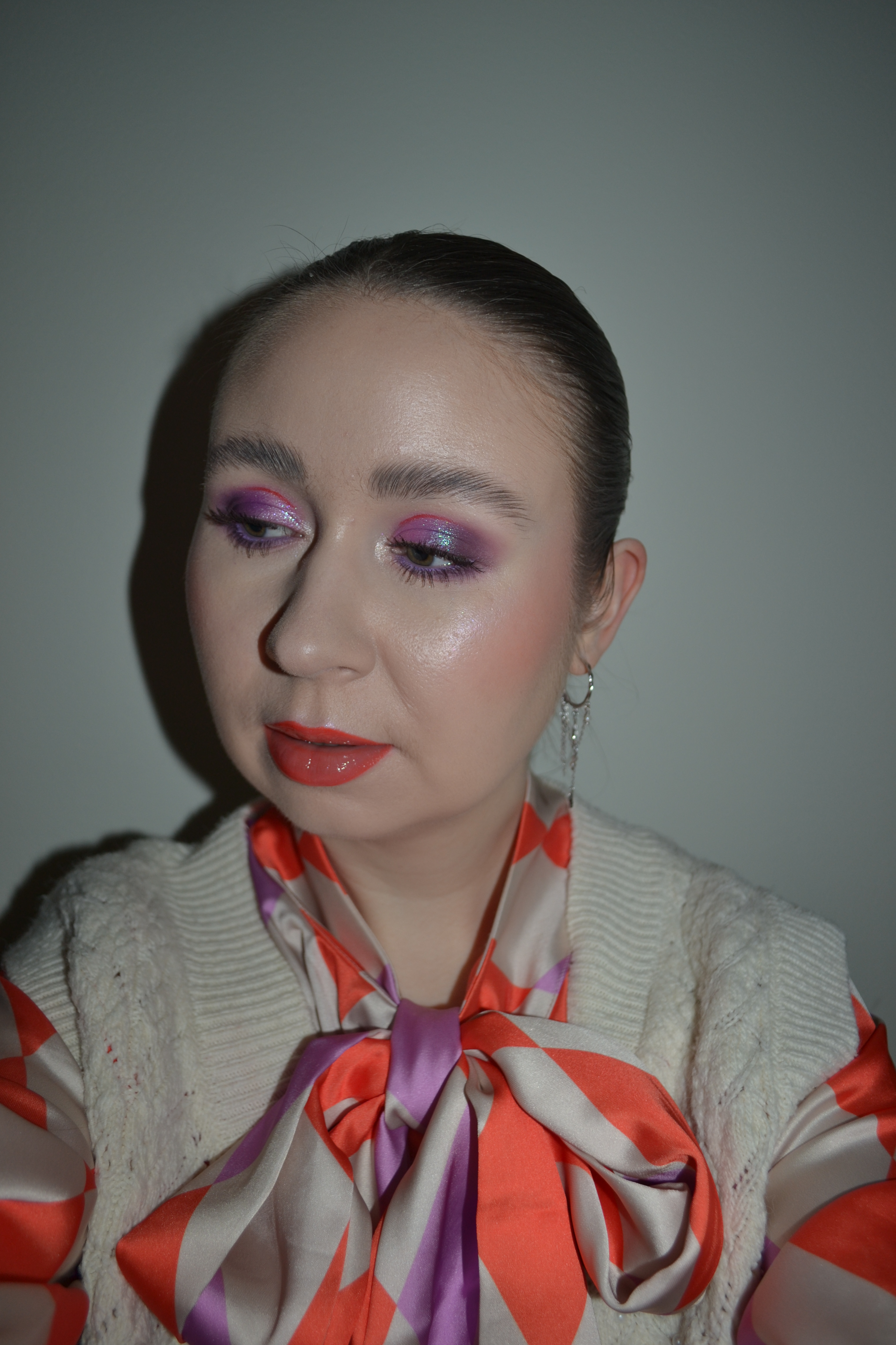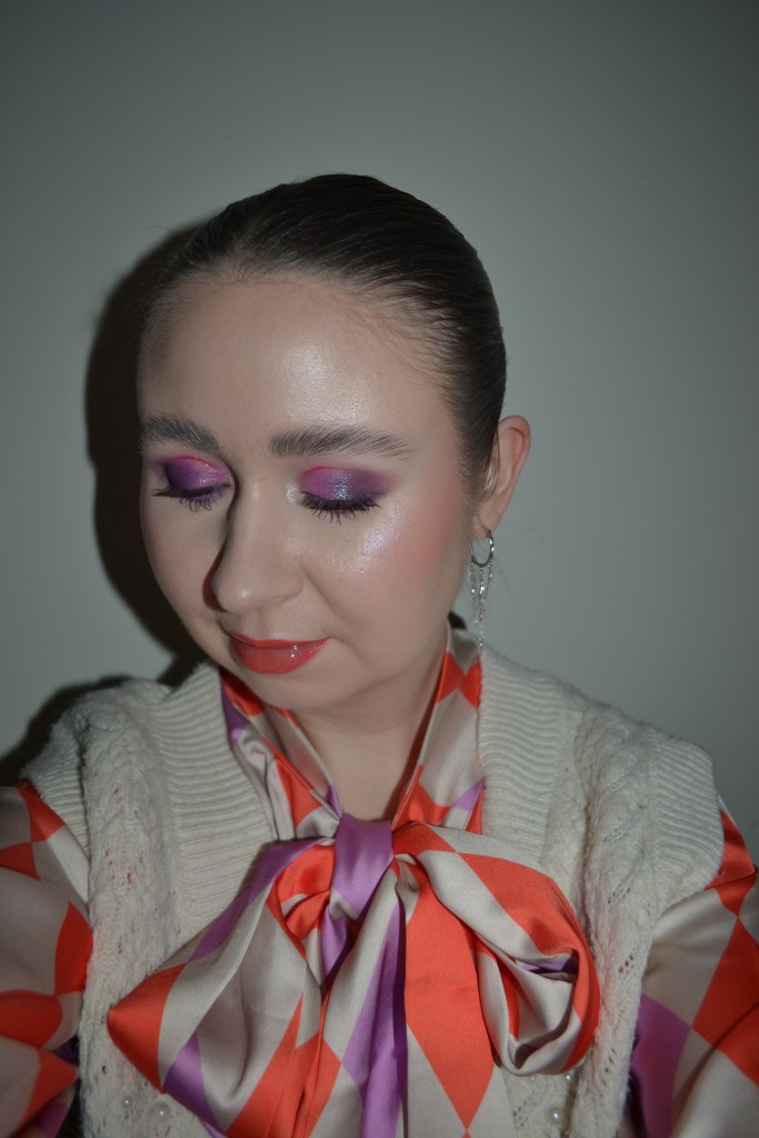 Here’s the make-up I wore with this outfit. You know I love a purple eye look, and I think the orange crease liner is a fun addition to the look.