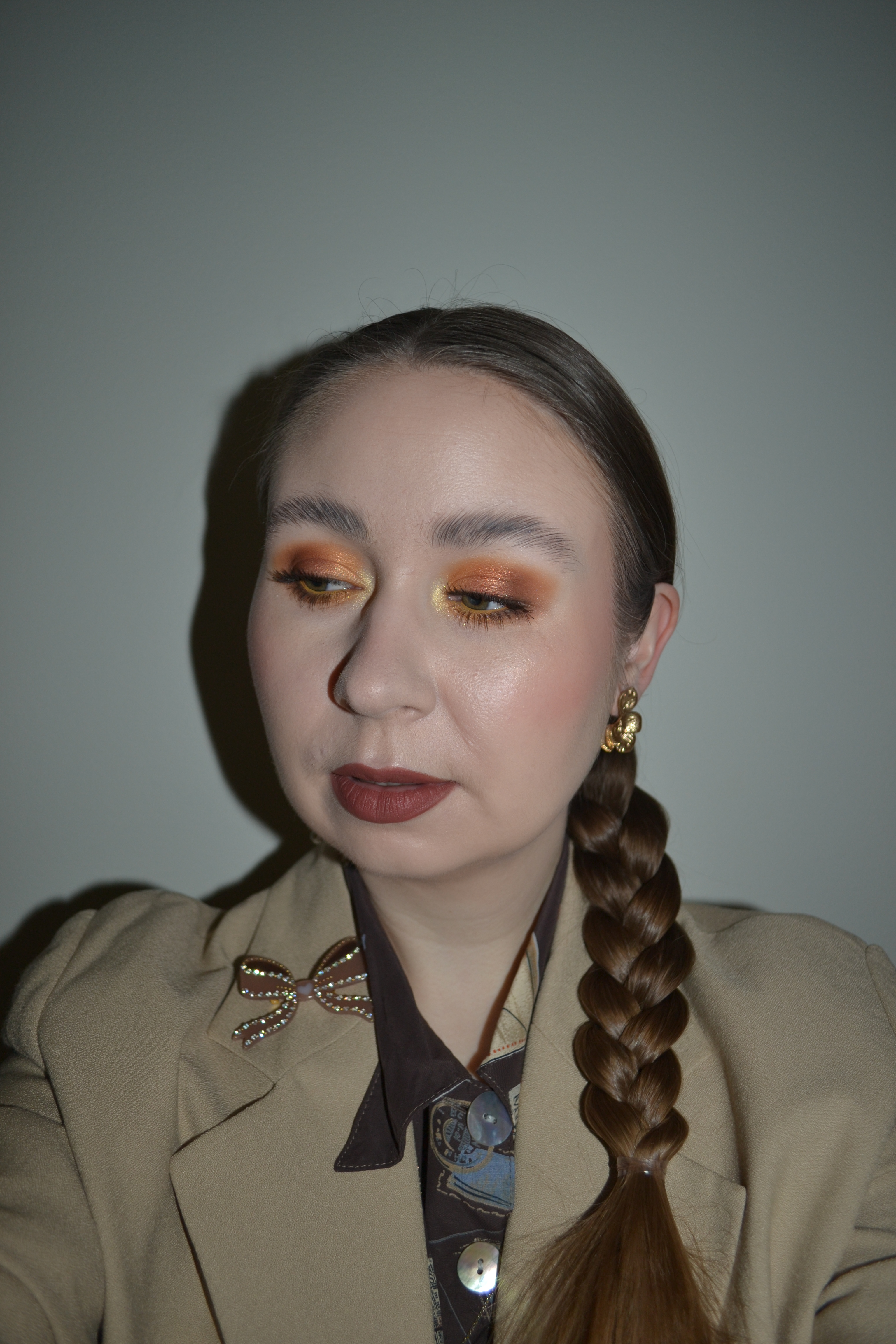 Here’s the make-up I wore with this outfit. It’s not very often that I wear this kind of warm toned neutral eye look, and it probably won’t ever be my fabsolute favourite kind of eye look, but I do think it’s pretty.