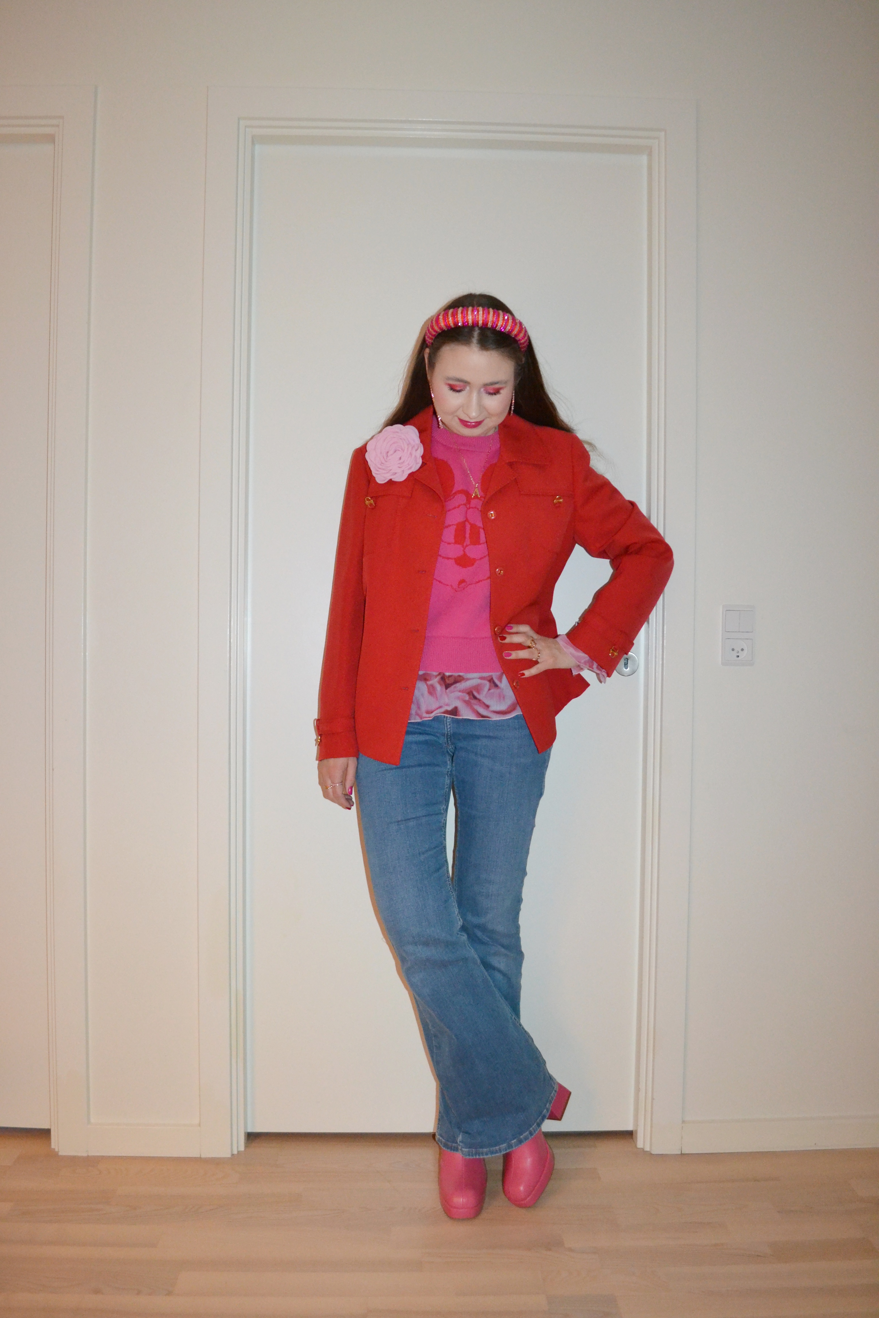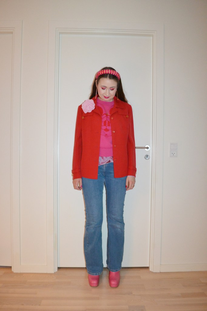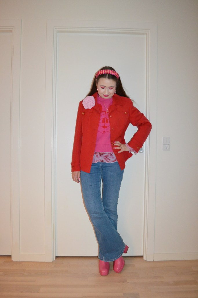 Here’s what I wore Monday February 10. Like last year, I decided to wear Valentine’s Day inspired outfits the entire week leading up to Valentine’s Day, and I kicked off the week with this “red and pink with denim” look.