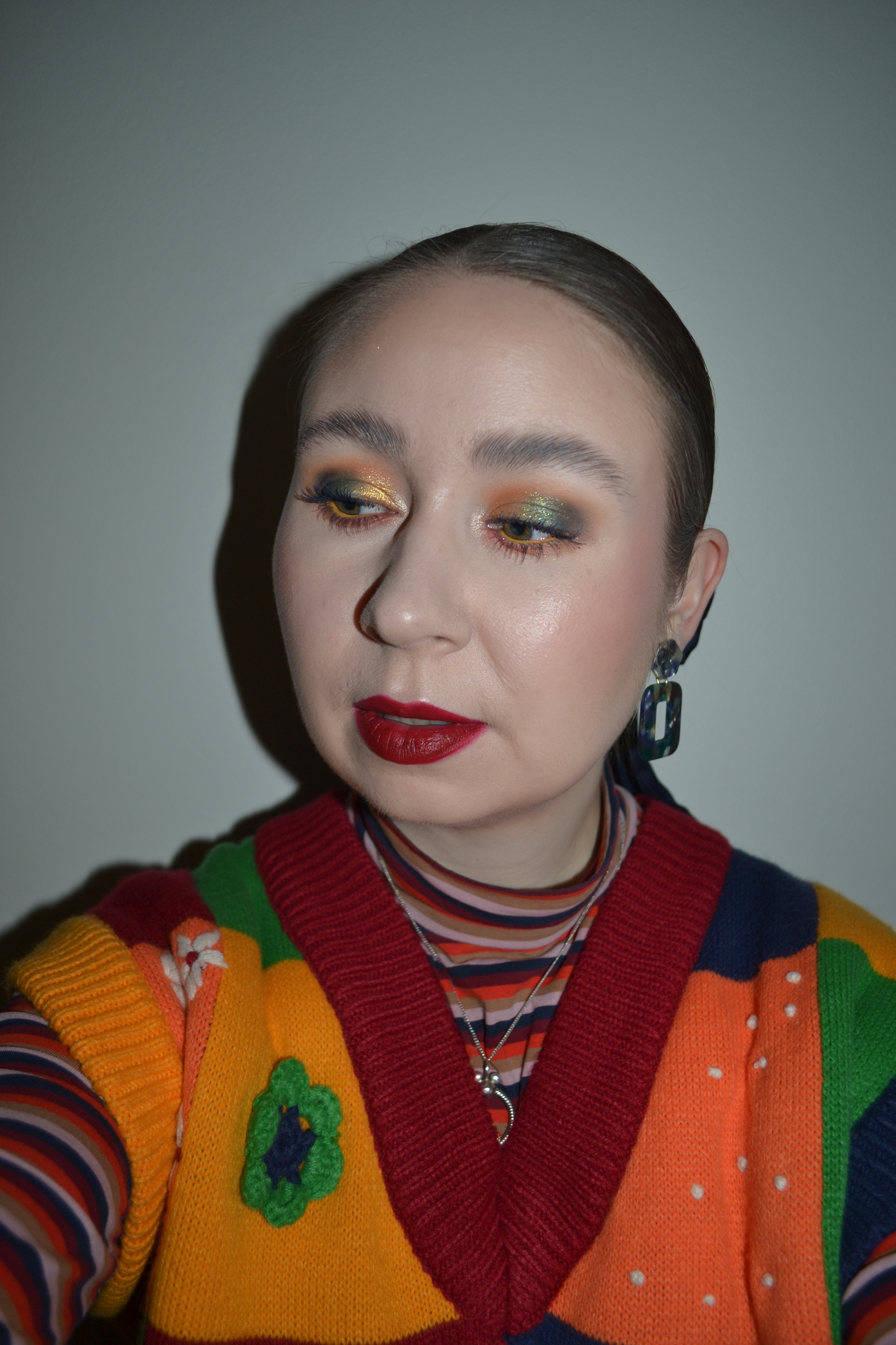 Here’s the make-up I wore with this outfit. I needed a yummy, autumnal make-up look to go with the yummy, autumnal colour scheme of my outfit, and I love how this make-up look turned out. The Nomad Cosmetics Haunted Europe intense color palette was the perfect eyeshadow palette for this look.