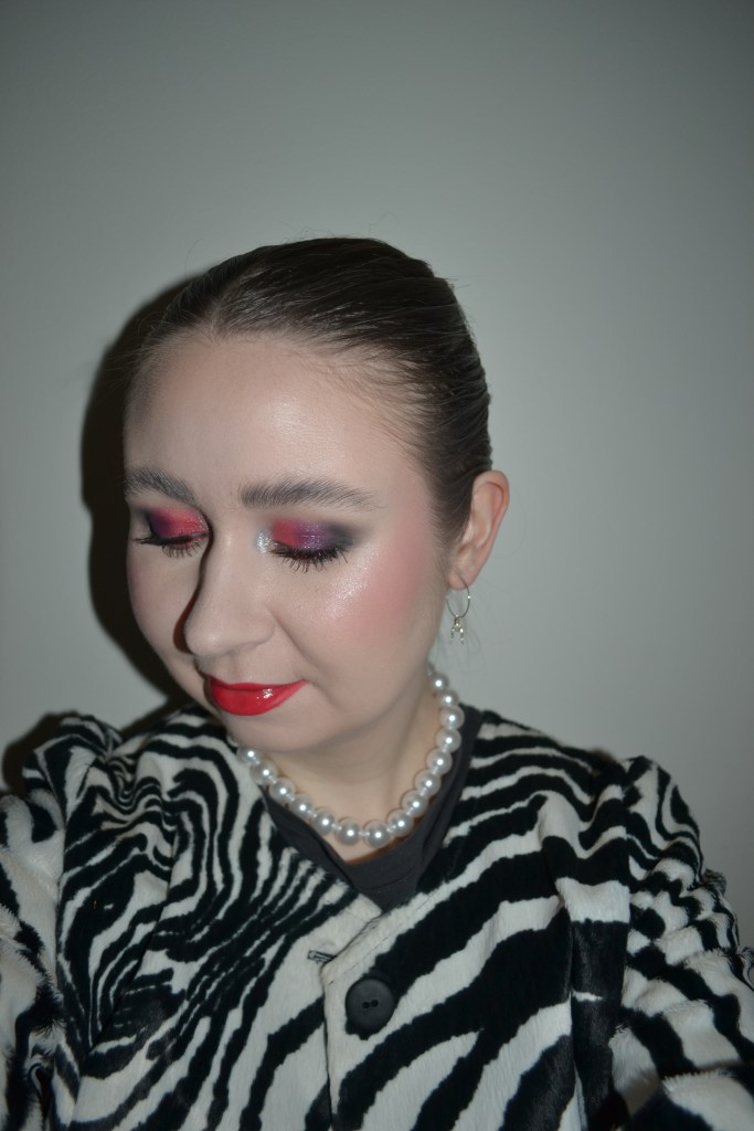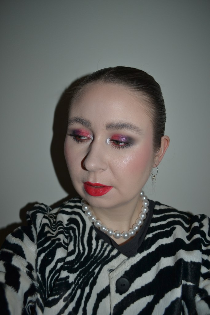 Here’s the make-up I wore with this outfit. Every now and again I feel like wearing a vampy black and red eye look, and I think this particular outfit gave me a perfect opportunity to do so.