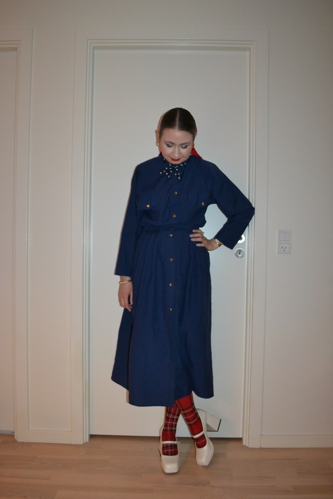 (Blouse + skirt + scarf – second hand, tights + heels – Monki)