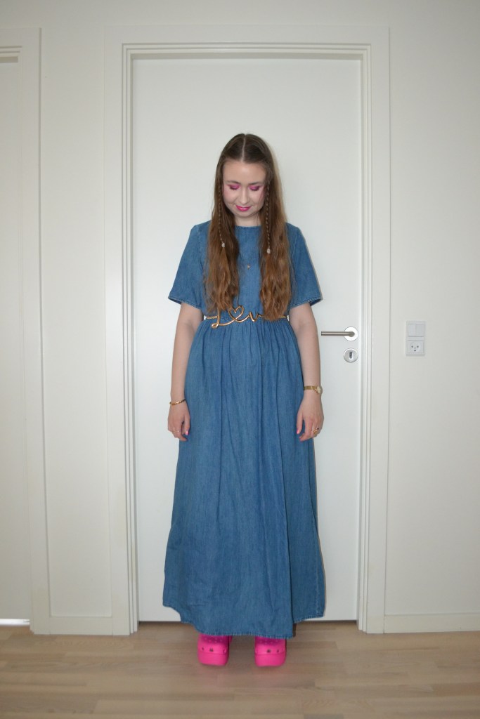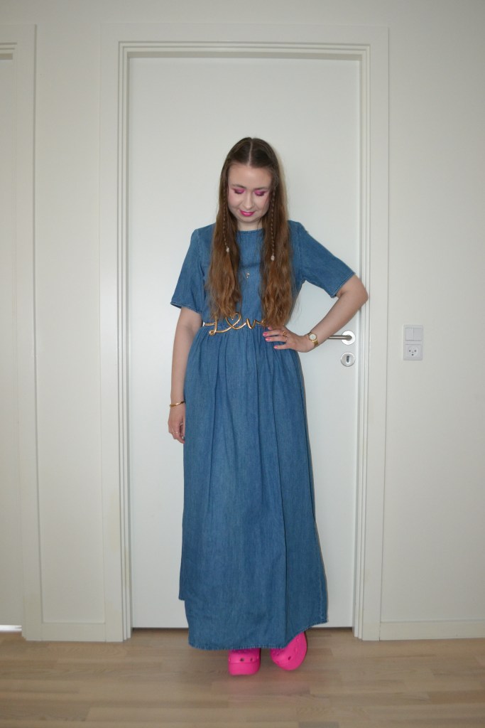 (Dress – Monki, belt – Asos Design, shoes – Crocs)