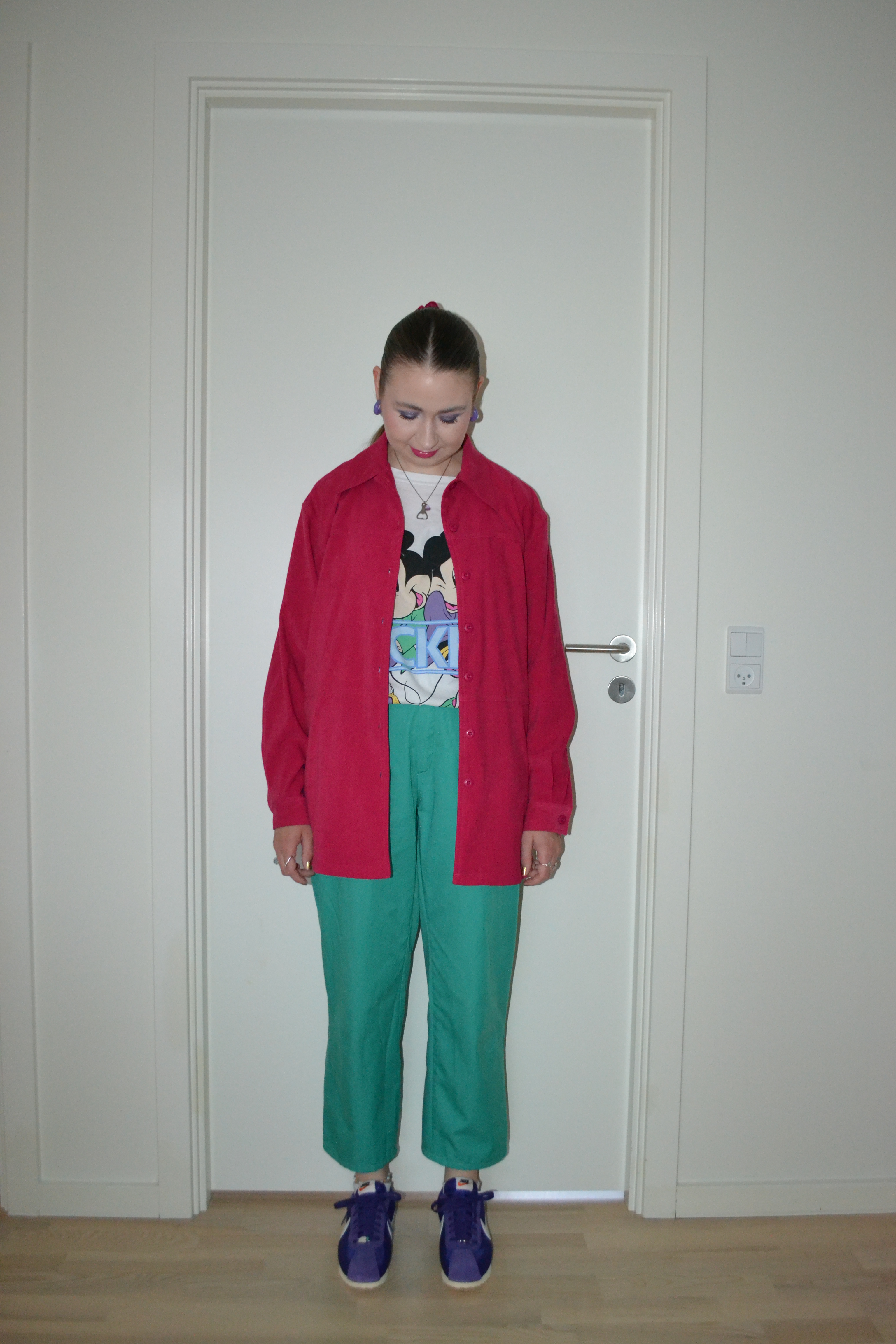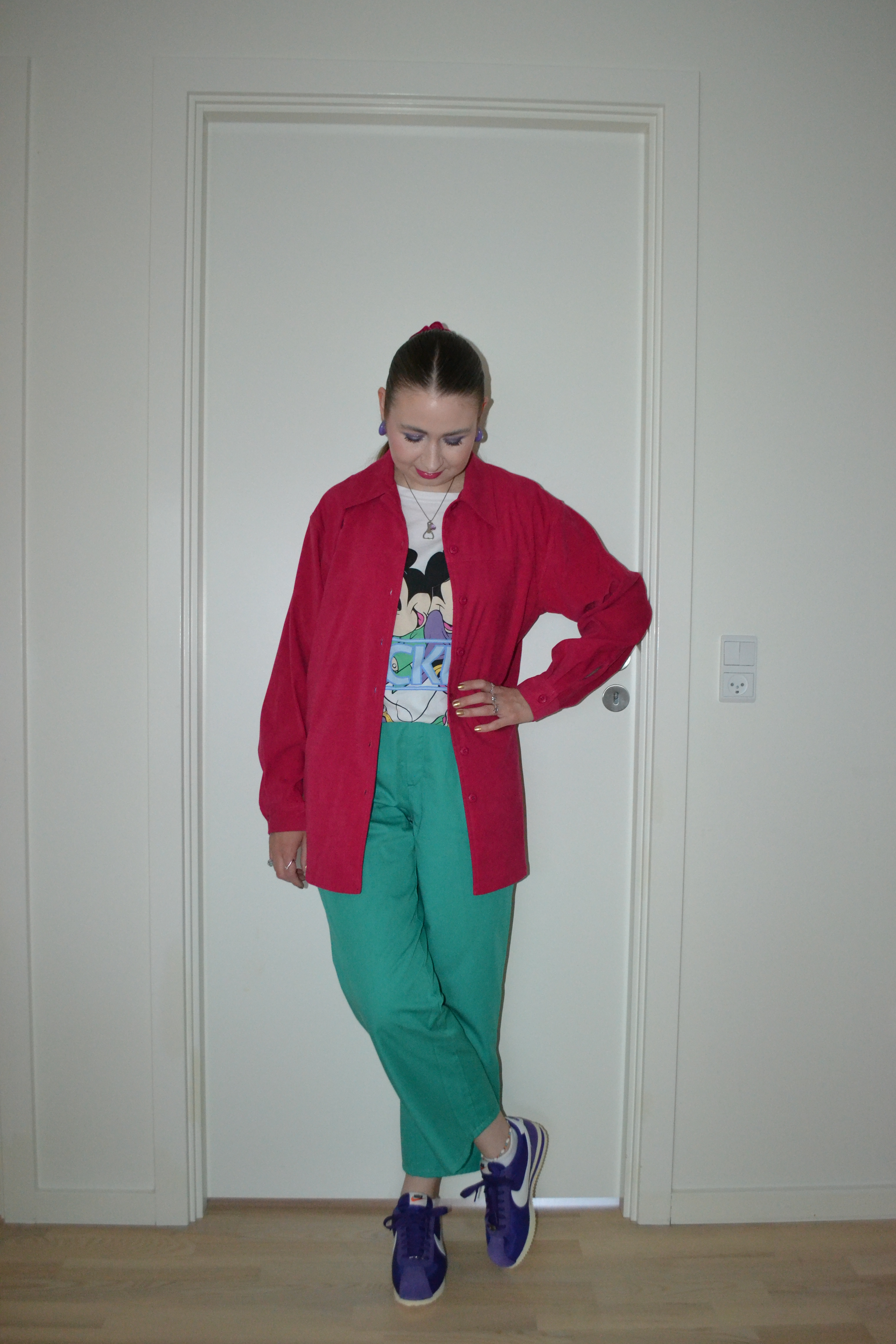 (Shirt + trousers – second hand, T-shirt – Stradivarius, sneakers – Nike)