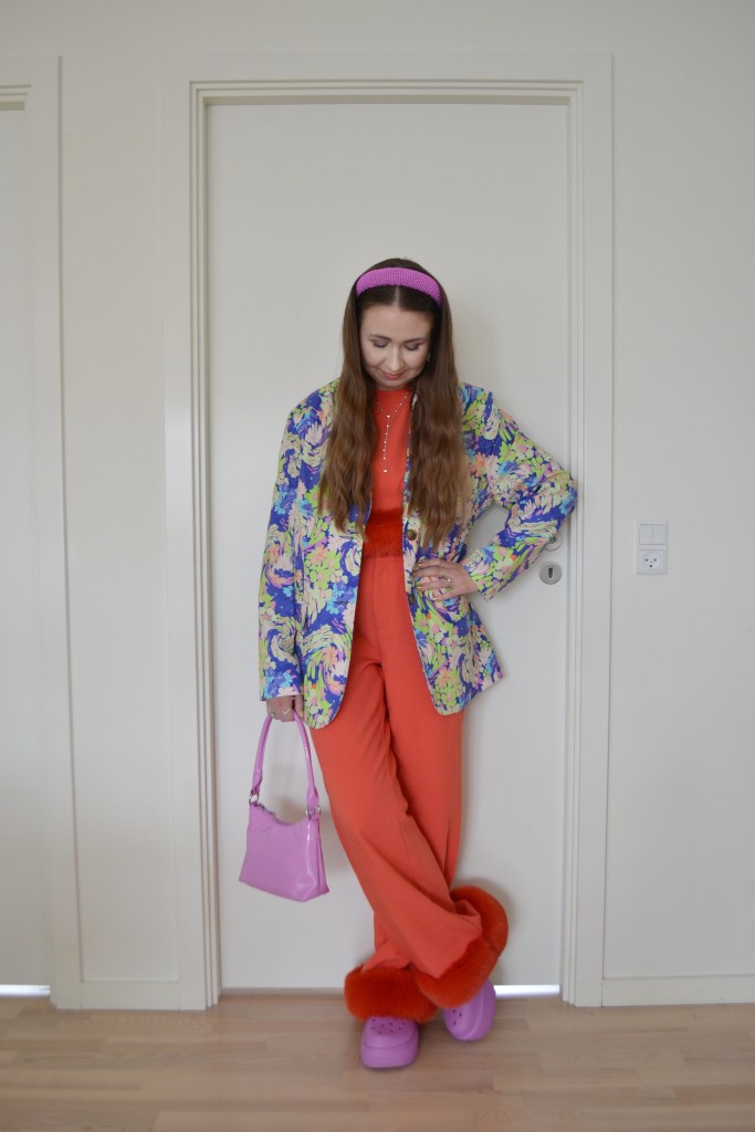 (Blazer – Asos Design, top + trousers – Extro & Vert, bag – Silfen, shoes – Crocs)