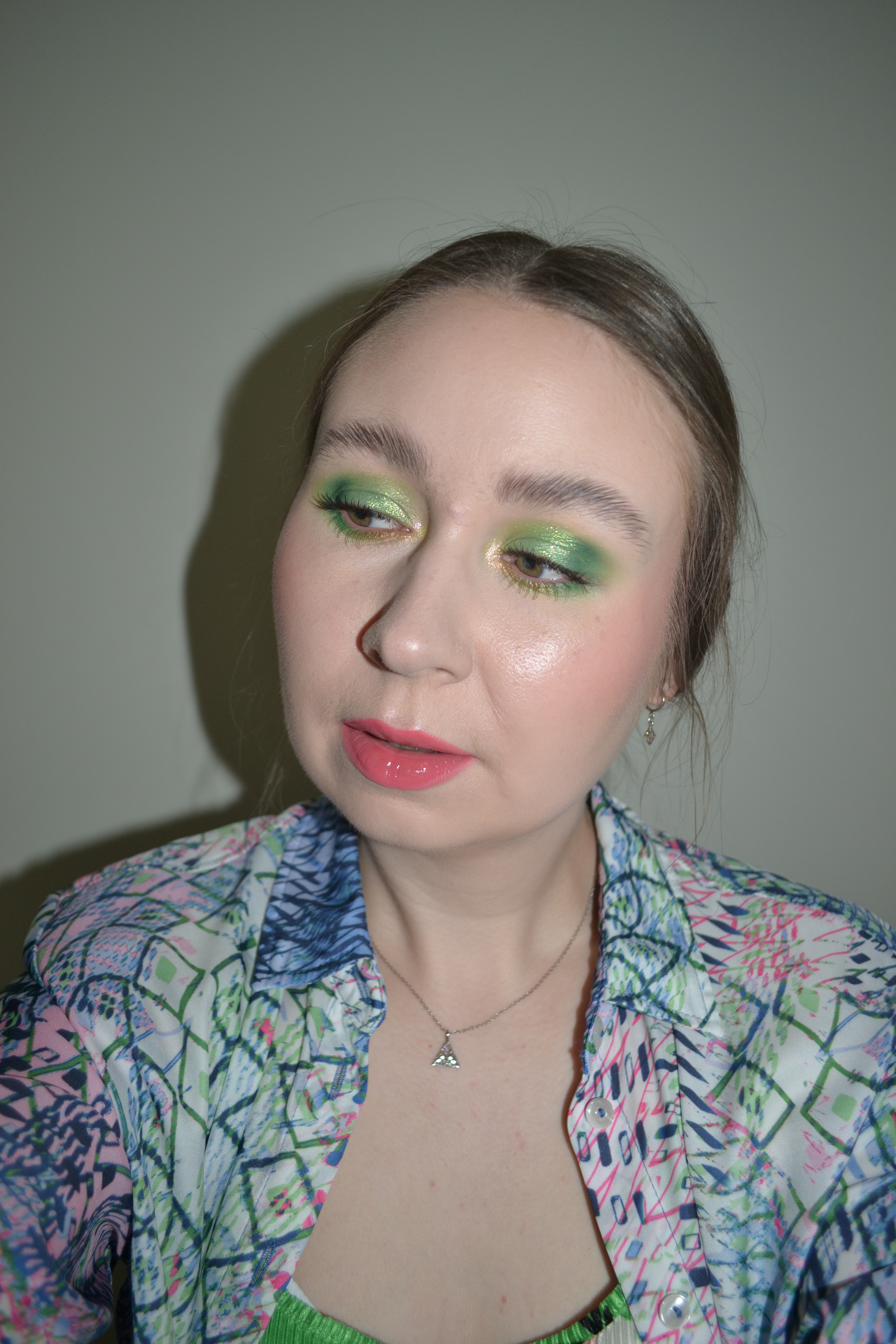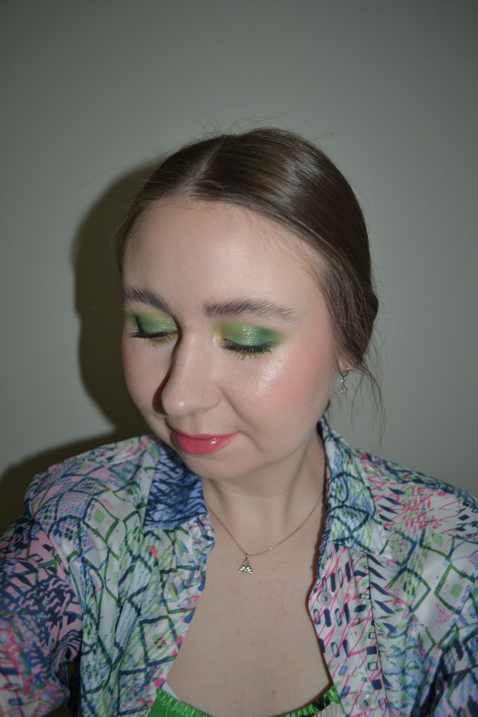 Here’s the make-up I wore with this outfit. Green and pink always look good together, and it was kind of my colour theme for that weekend.