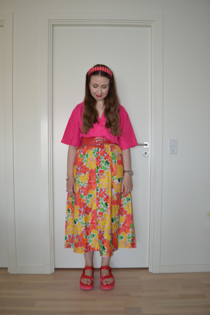Feel-good colours Posted on August 24, 2025 by Mucha-Lucha Here’s what I wore Thursday June 26. I love this outfit! It’s just so fun and colourful, and I remember feeling really good in this look. (Blouse + belt – second hand, skirt – YAS, sandals – Teva) Share this: Click to share on X (Opens in new window) X Click to share on Facebook (Opens in new window) Facebook Like Loading... Related
