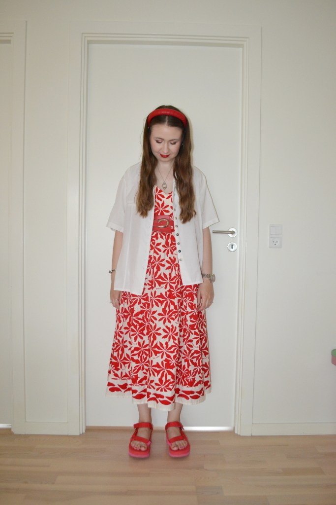 Three-day trip Posted on September 6, 2025 by Mucha-Lucha Here’s what I wore Monday July 21. I went on a little three-day trip with my family, and this was my travel look. (Shirt + belt – second hand, dress – H&M, sandals – Teva) Share this: Click to share on X (Opens in new window) X Click to share on Facebook (Opens in new window) Facebook Like Loading... Related