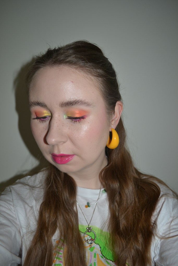 Here’s the make-up I wore with this outfit. I love to wear brights and neons in summer.