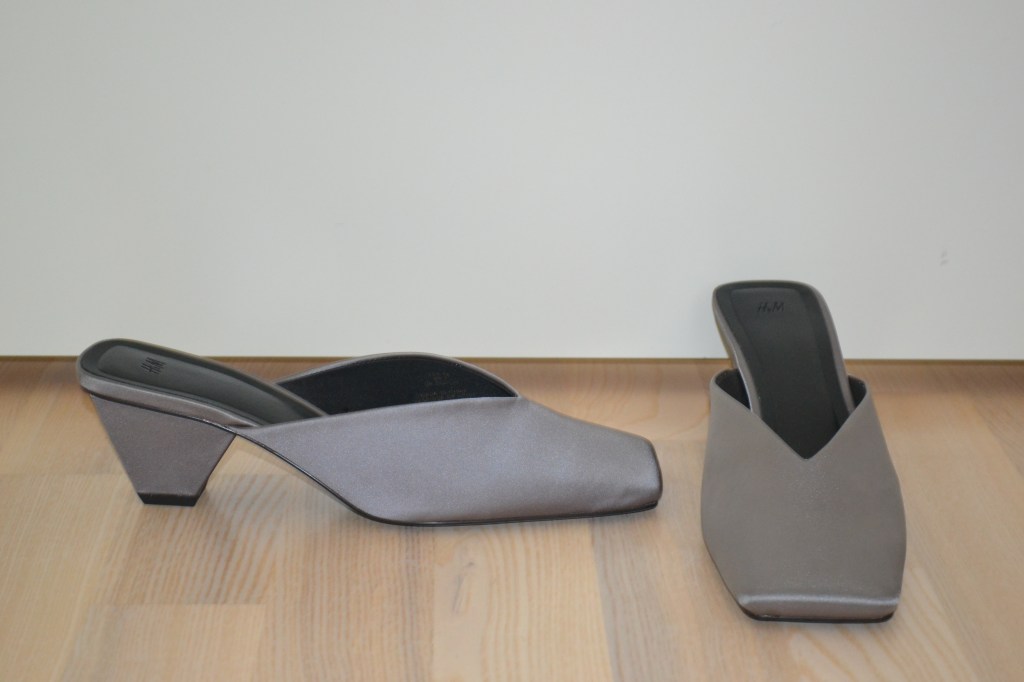 Now, let’s move on to some heels. These grey satin square toe mules are from H&M, and I got them on sale.