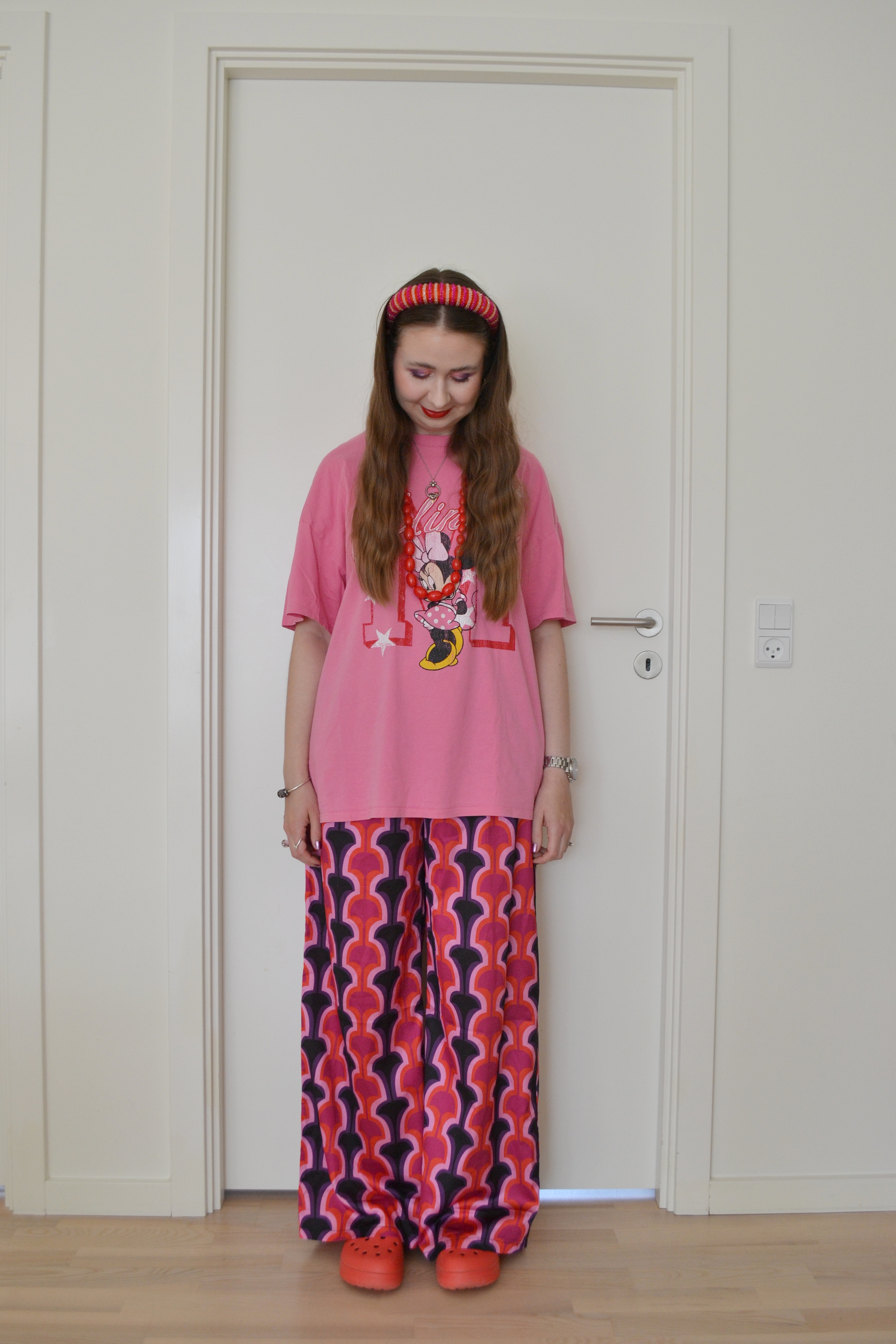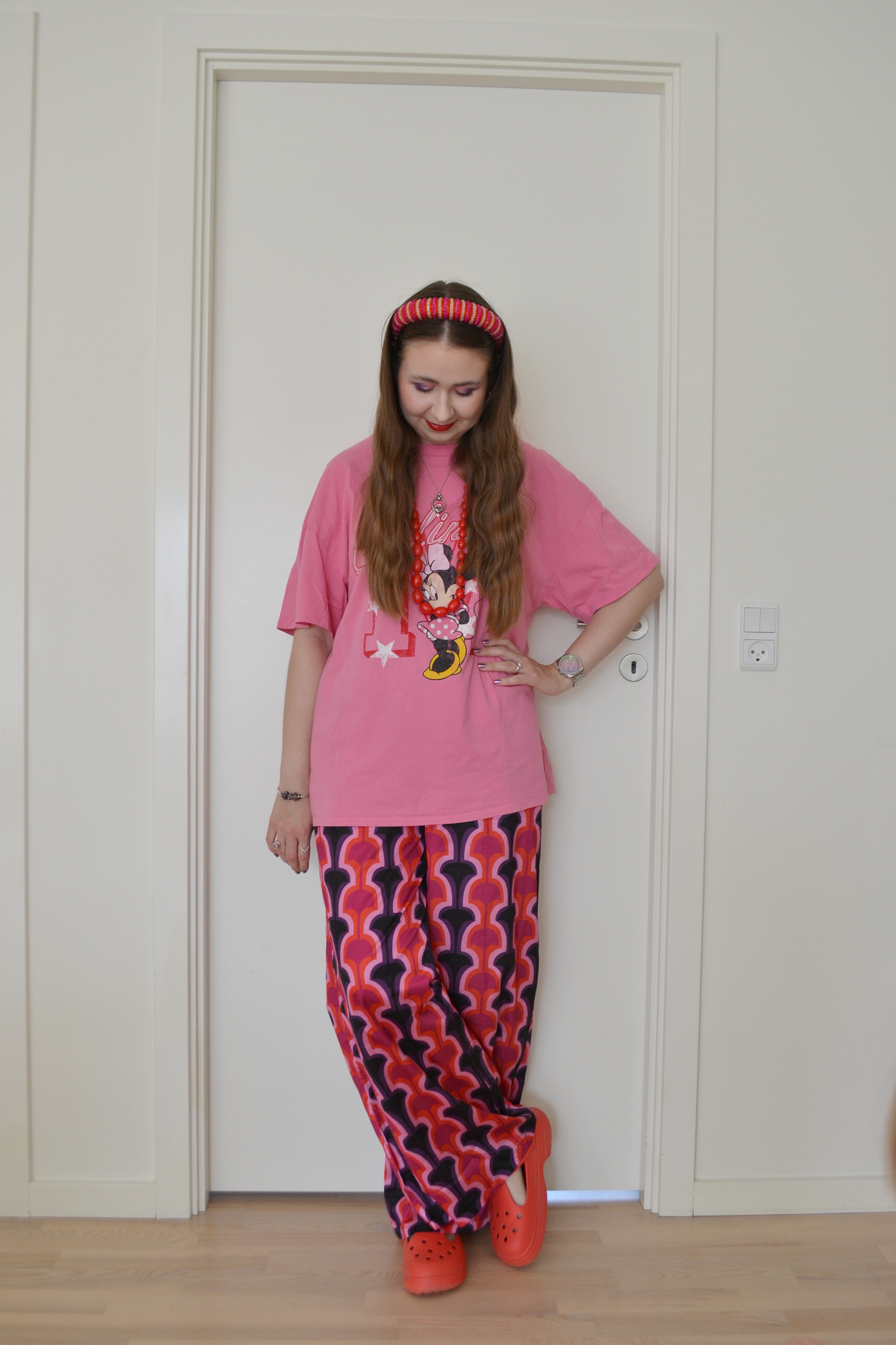 Pink and red fun Posted on October 8, 2025 by Mucha-Lucha Here’s what I wore Saturday September 13. You know I love pink and red together, and I think this outfit combo is really fun. (T-shirt – H&M, trousers – In The Style, shoes – Crocs) Share this: Click to share on X (Opens in new window) X Click to share on Facebook (Opens in new window) Facebook Like Loading... Related