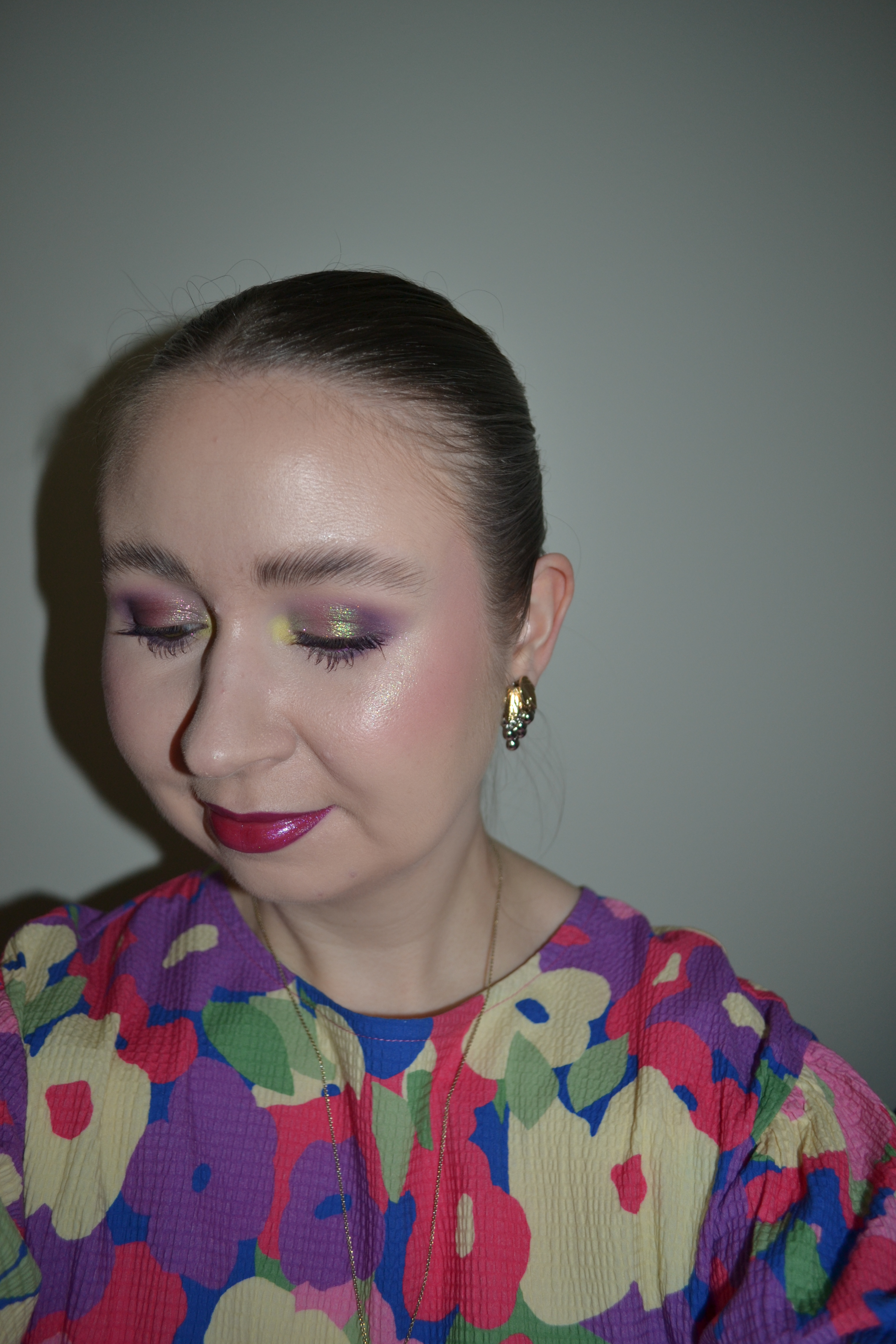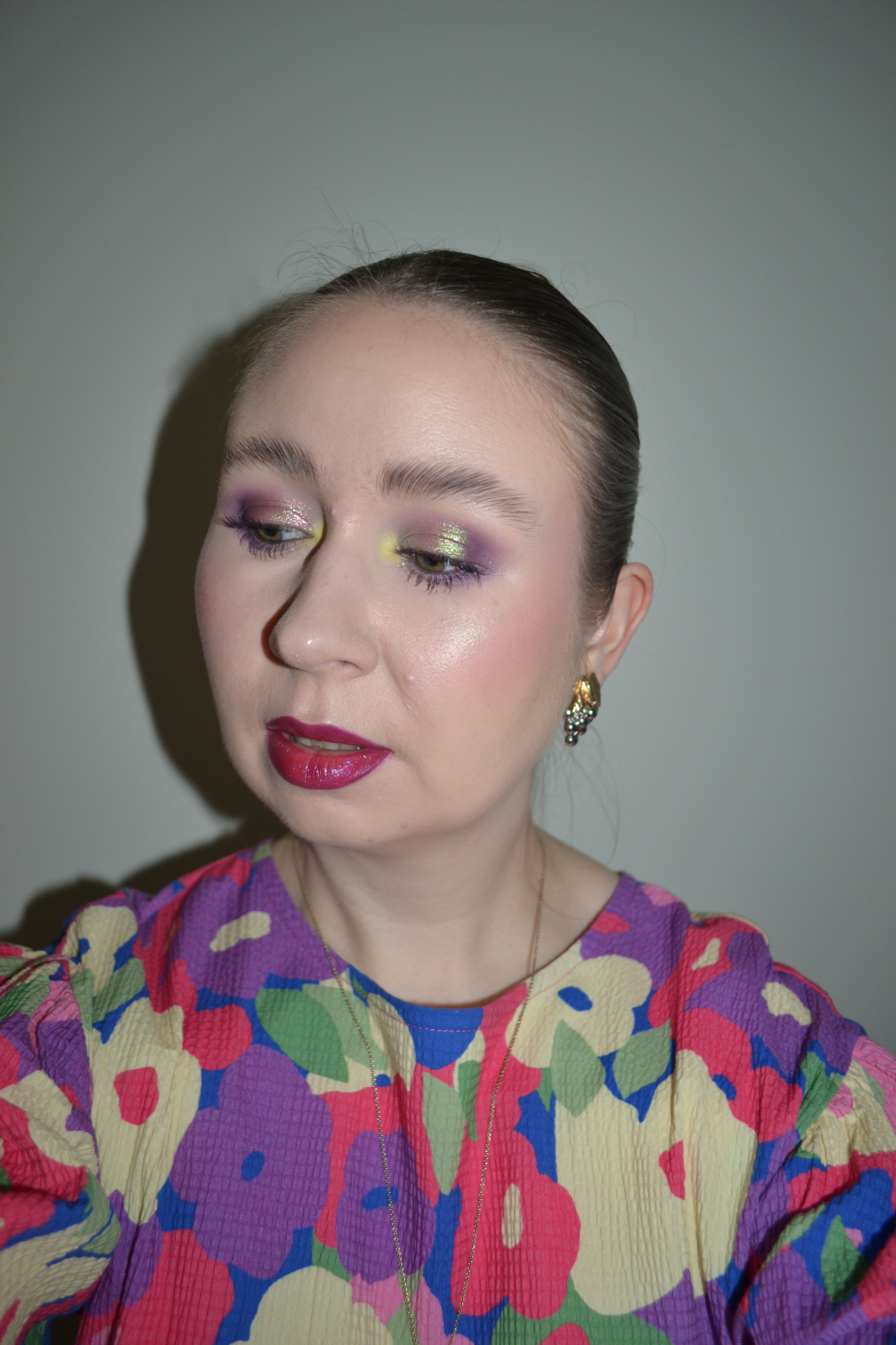 (Base: primer – e.l.f Cosmetics Power Grip primer, foundation – Maybelline Superstay Lumi Matte foundation (shade: 96), concealers – Smashbox x Becca Under Eye Brightening Corrector in Fair/Light + Huda Beauty #FAUXFILTER Luminous Matte liquid concealer (shade: 1.3G Marshmellow), powders – Fenty Beauty Bright Fix Instant Brightening + Blurring powder (shade: Lavender 01) + e.l.f. Cosmetics Halo Glow setting powder in Light. Face make-up: bronzer – RMS Beauty ReDimension Hydra bronzer in Beachwalk Betty, blush – NYX Buttermelt blush in 08 All The Butta, highlighter – Unearthly Cosmetics Xander Low Light highlighter in Ooze. Eye make-up: base – MAC Pro Longwear Paint Pot in Painterly, eyeshadows – Essence eyeshadow in 20 Cream + Dieverune Cosmetics Magnetic Mineralia palette (shades: MM1 + MM2 + MM3 + MM6 + MM7), mascara – Maybelline Lash Sensational Sky High mascara (shade: Plum Twilight), eyeliner – Colourpop BFF Créme gel liner in Actin’ Up (Multi-chrome). Eyebrows: NYX Lift & Snatch! Brow Tint Pen in Ash Brown + e.l.f. Cosmetics Brow Lift. Lips: MAC Liptensity lip pencil in Hellebore + Nomad Cosmetics Witch City Salem Spellbinding lipstick in Devil’s Book)