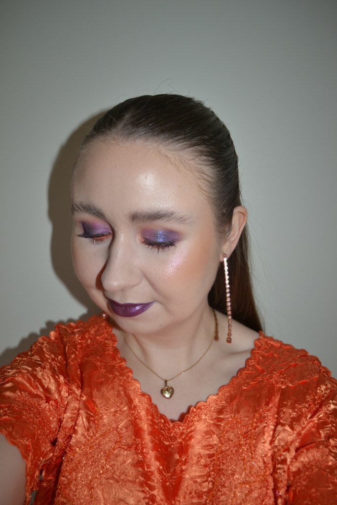 Here’s the make-up I wore with this outfit. The colour scheme of my outfit was halloweeny, and my make-up look definitely had intentional Halloween vibes. I did use the Nomad Cosmetics Witch City Salem intense color palette and one of the Witch City Salem Spellbinding lipsticks in this look afterall.