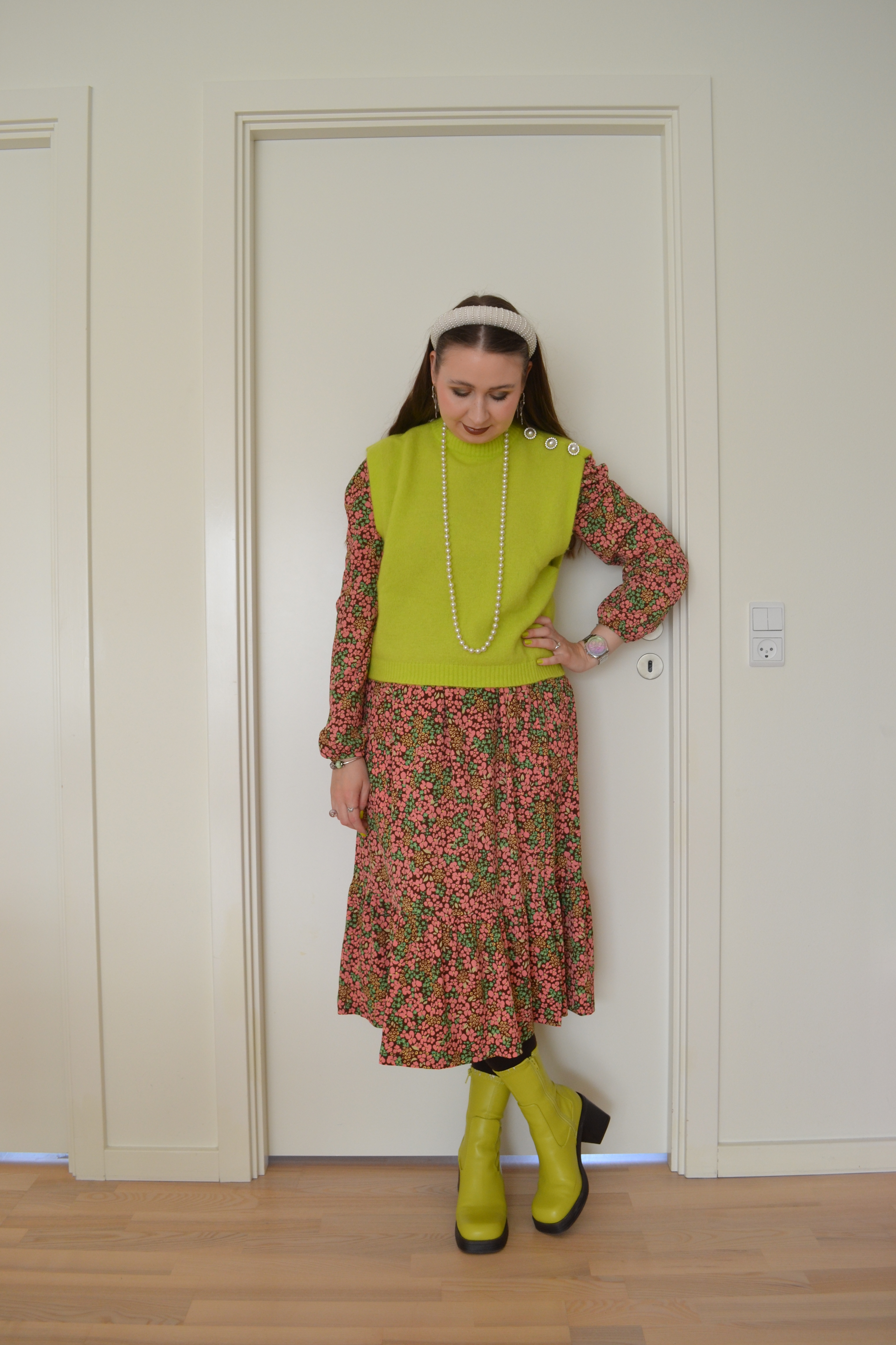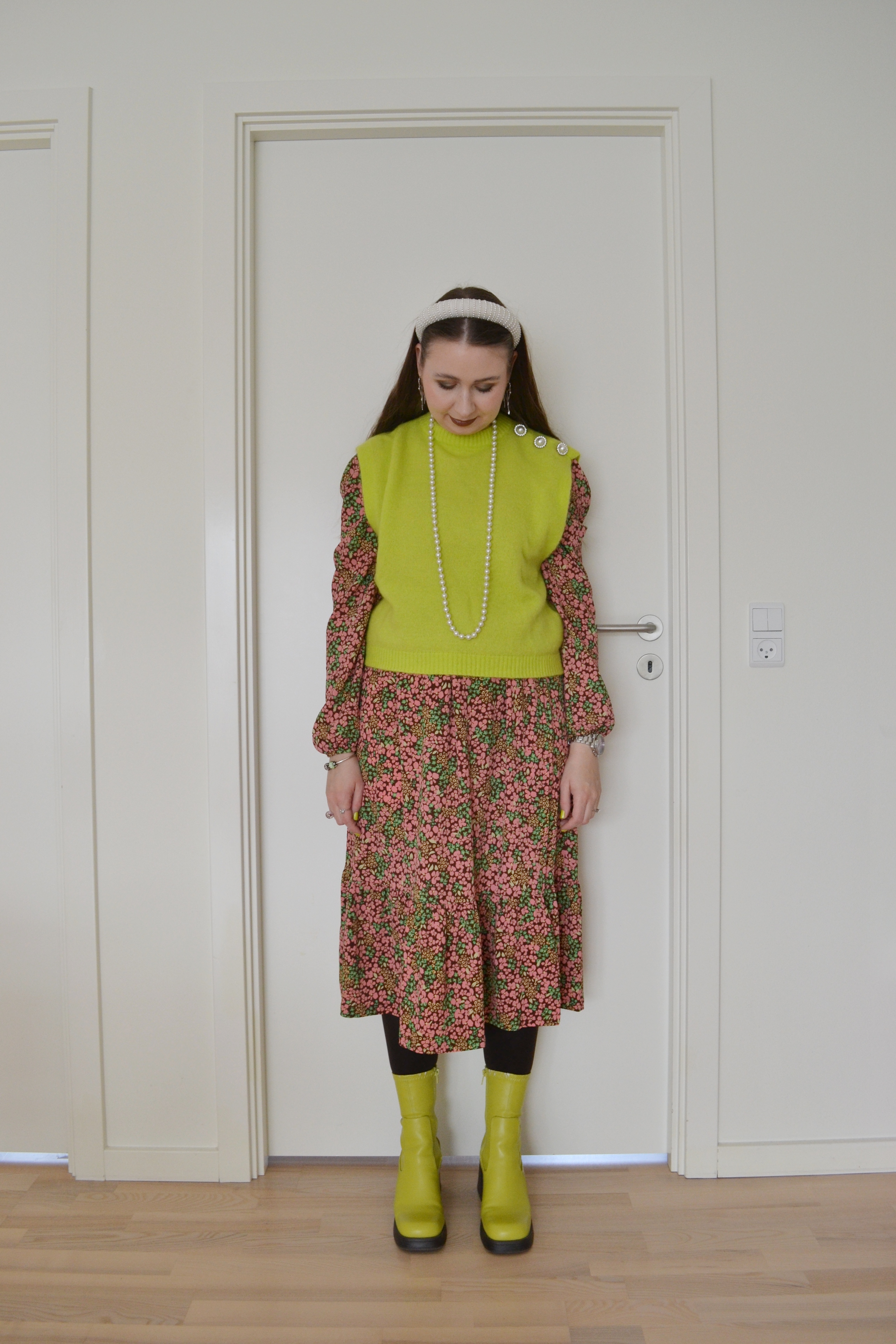 Acid lime/chartreuse Posted on November 7, 2025 by Mucha-Lucha Here’s what I wore Monday October 20. I love this acid lime/chartreuse colour; it adds such a fun pop to an outfit. (Sweater vest – Crás, dress – Monki, tights – Calzedonia, boots – Asos Design) Share this: Click to share on X (Opens in new window) X Click to share on Facebook (Opens in new window) Facebook Like Loading... Related