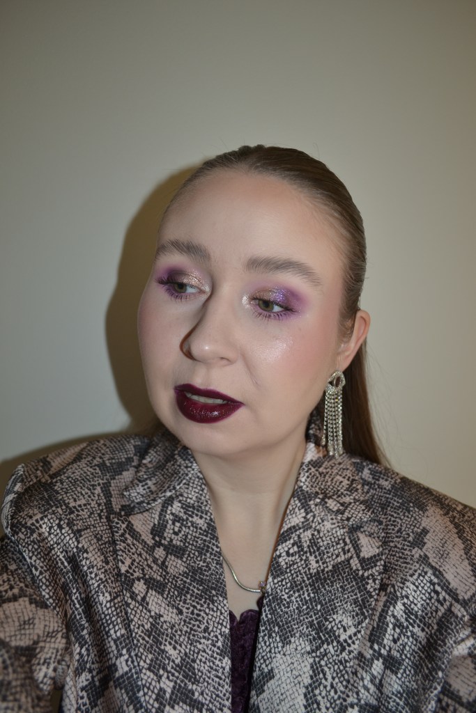 (Base: primer – Colourpop Pretty Fresh Set It Up primer, foundation – L’Oréal Paris True Match Nude plumping tinted serum (shade: 0,5-2 Very Light), concealers – Rare Beauty Positive Light under eye brightener (shade: Light) + Huda Beauty #FAUXFILTER Luminous Matte liquid concealer (shade: 1.3G Marshmellow), powders – Fenty Beauty Bright Fix Instant Brightening + Blurring powder (shade: Lavender 01) + Laura Mercier Translucent Loose setting powder in Translucent. Face make-up: bronzer – RMS Beauty ReDimension Hydra bronzer in Beachwalk Betty, blush – Unearthly Cosmetics Spring Magic incandescent blush palette (shade: Pendulum), highlighter – Natasha Denona Hy-Gen Skincare Infused Glow Beautifier in Light. Eye make-up: base – MAC Pro Longwear Paint Pot in Painterly, eyeshadows – Essence Soft Touch eyeshadow in 01 The One + Glaminatrix x Monolith Crown Legacy palette (shades: Noble + Throne + Opulent + Regal + Gilded), mascara – L’Oréal Panorama volume million mascara in Black, eyeliners – Colourpop BFF Créme gel liners in Charmer + Amethyst Hour. Eyebrows: NYX Lift & Snatch! Brow Tint Pen in Ash Brown + e.l.f. Cosmetics Brow Lift. Lips: MAC Liptensity lip pencil in Hellebore + 3ina The Cherry lip glaze)
