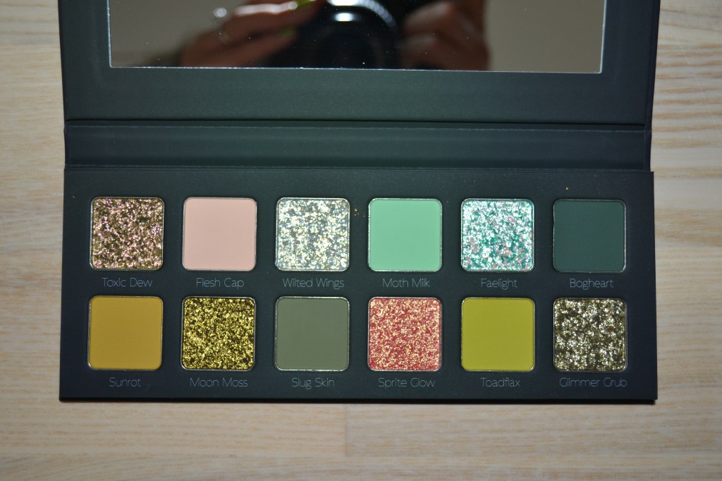 I think the Unearthly Cosmetics Shadow Sculpt – Ghoul Garden palette has a beautiful colour story, but I didn’t love the formula of the shimmers. I usually get along very well with Unearthly Cosmetics’ shimmers, so I’m sad that they changed the formula for this palette. I wore the palette on my eyes here.