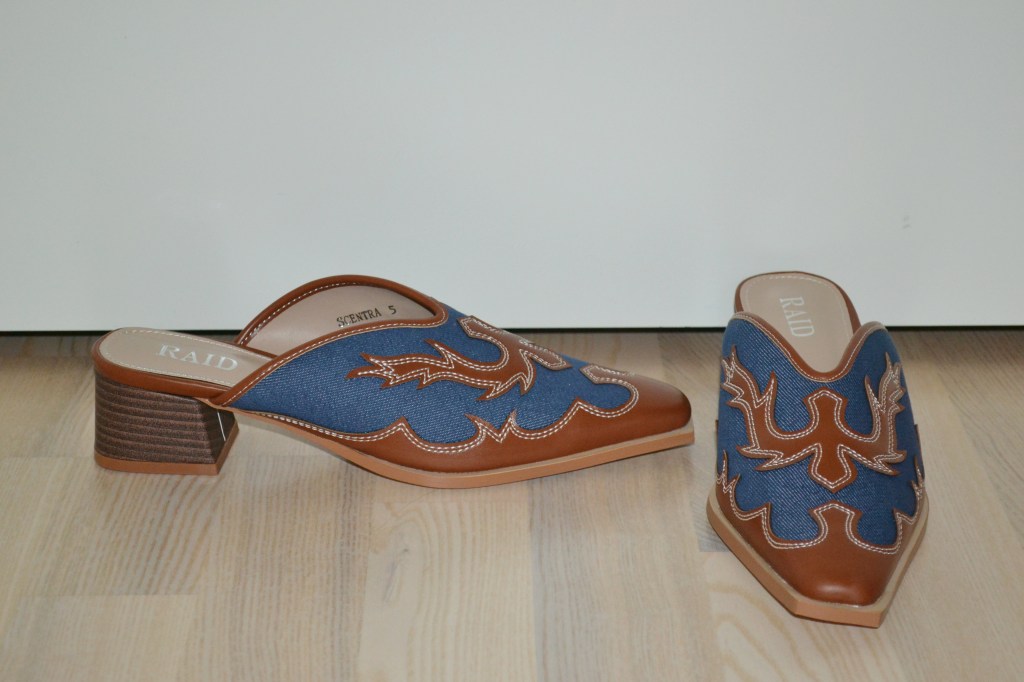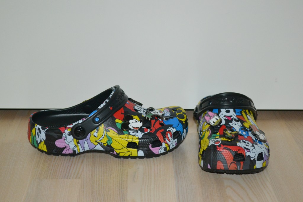 I’ve got two pairs of shoes to share with you. How could I pass on the Mickey and Friends Crocs? They were quite expensive on some websites, but I did manage to find them on sale. And I like a bit of a western-inspired shoe, and I just really liked these denim mules from Raid.