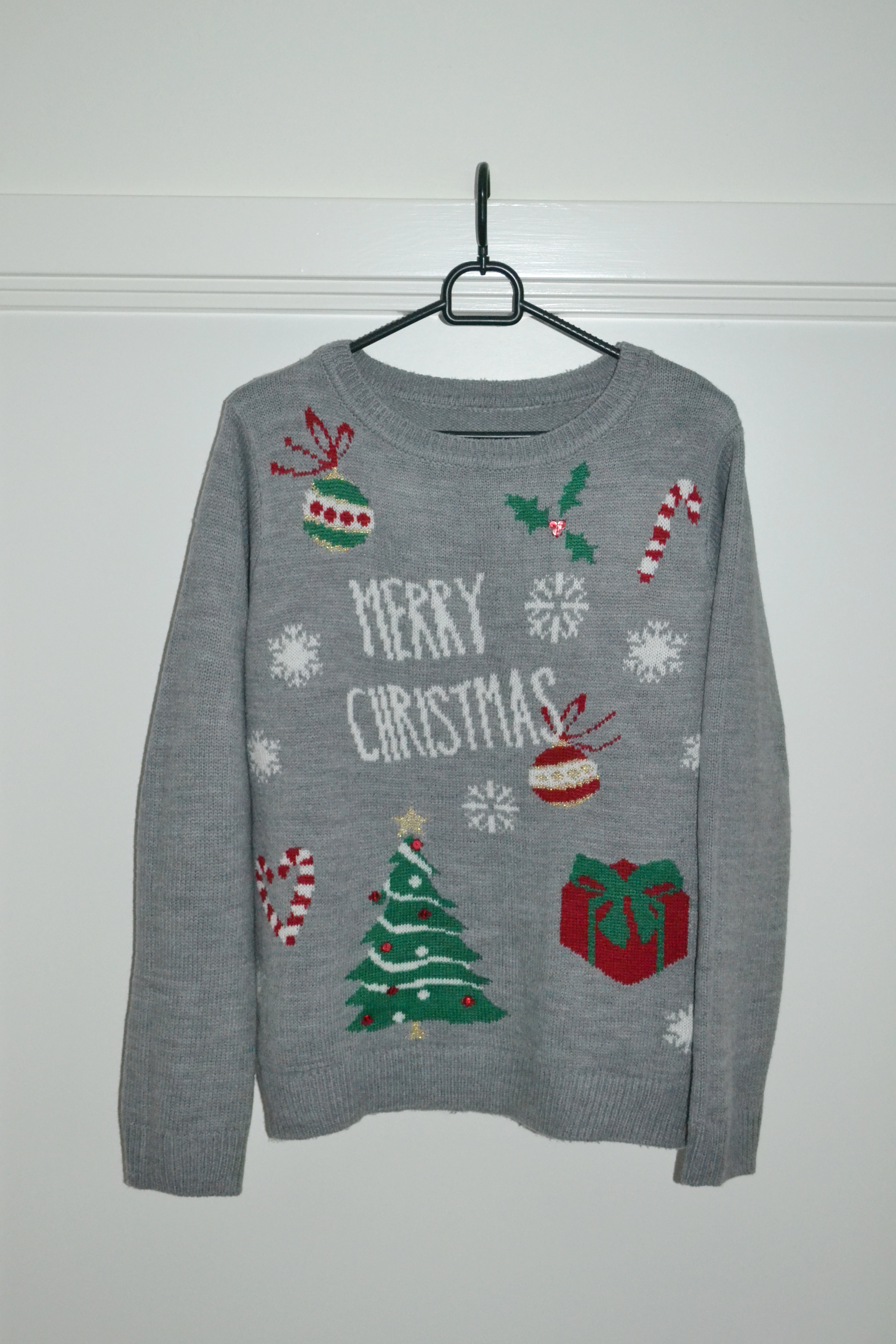 Let’s begin with the two Christmas clothing pieces I purchased this year. The sweater vest is from VRS (a supermarket brand), and I bought it in a bigger size, so I could fit my growing bump in there. The grey jumper is actually a second hand find, and I think it’s really cute.