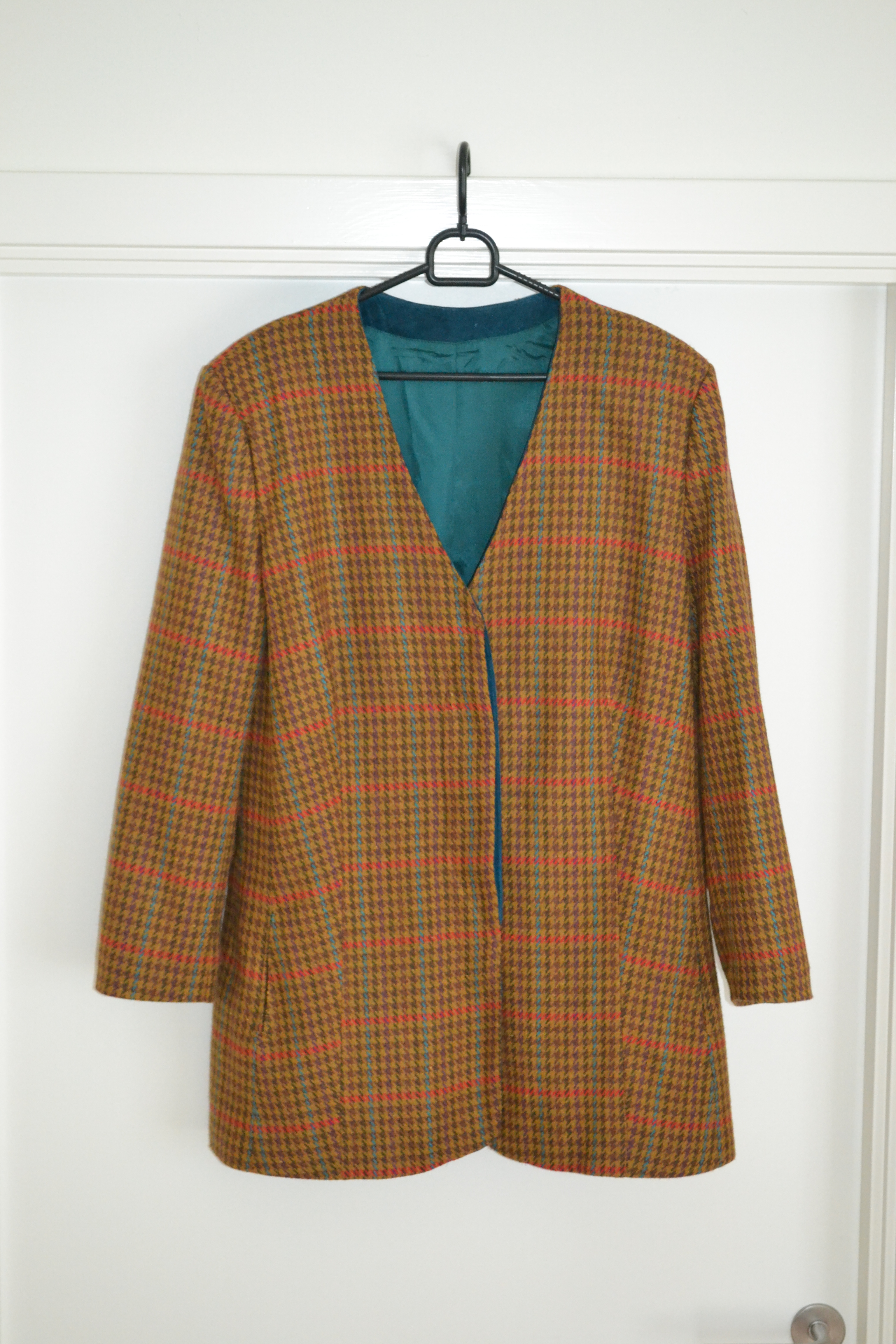 Moving on to some more second hand pieces. I got these three jackets; a patterned cropped denim jacket, a slightly slouchy checkered jacket, and a fun and colourful blazer. My mum actually got me the colourful blazer.