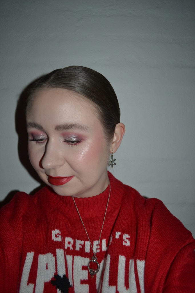 Here’s the make-up I wore with this outfit. When I decided on which products to pack for the move, I only picked Christmas/holiday-themed and wintery eyeshadow palettes, and I’ve had a lot of fun revisiting them.
