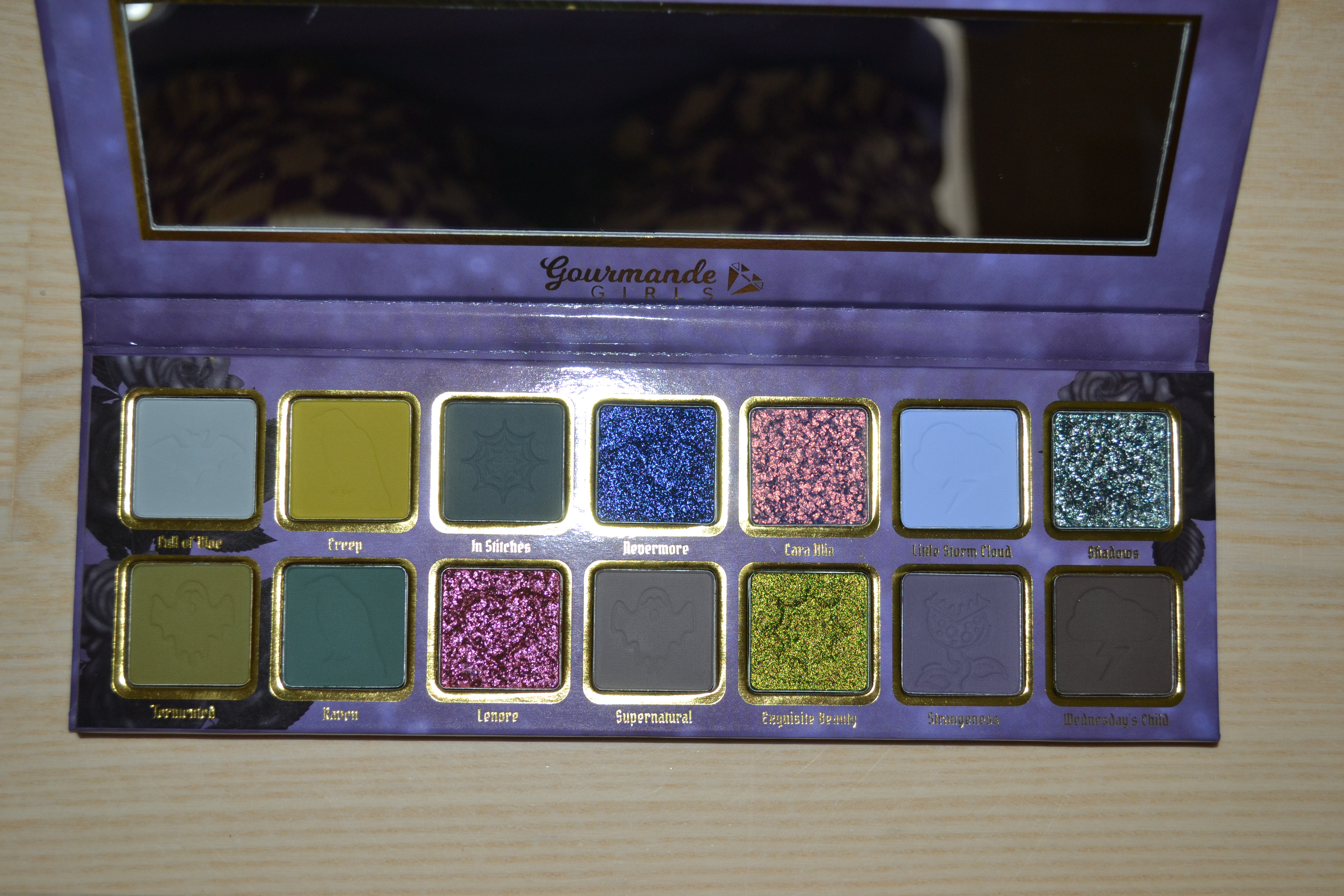This is the Gourmande Girls Nevermore palette, and it’s so dark and murky. I created this look with it, and I loved it.