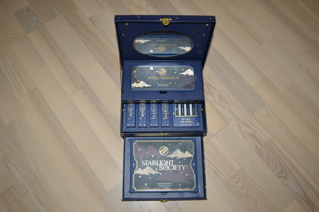 I purchased the entire Cosmic Beauty Starlight collection. It includes the Starlight Society palette, the Astral Radiance highlighter trio, two tinted lip oils, two liquid lipsticks, and four metallic gel liners.