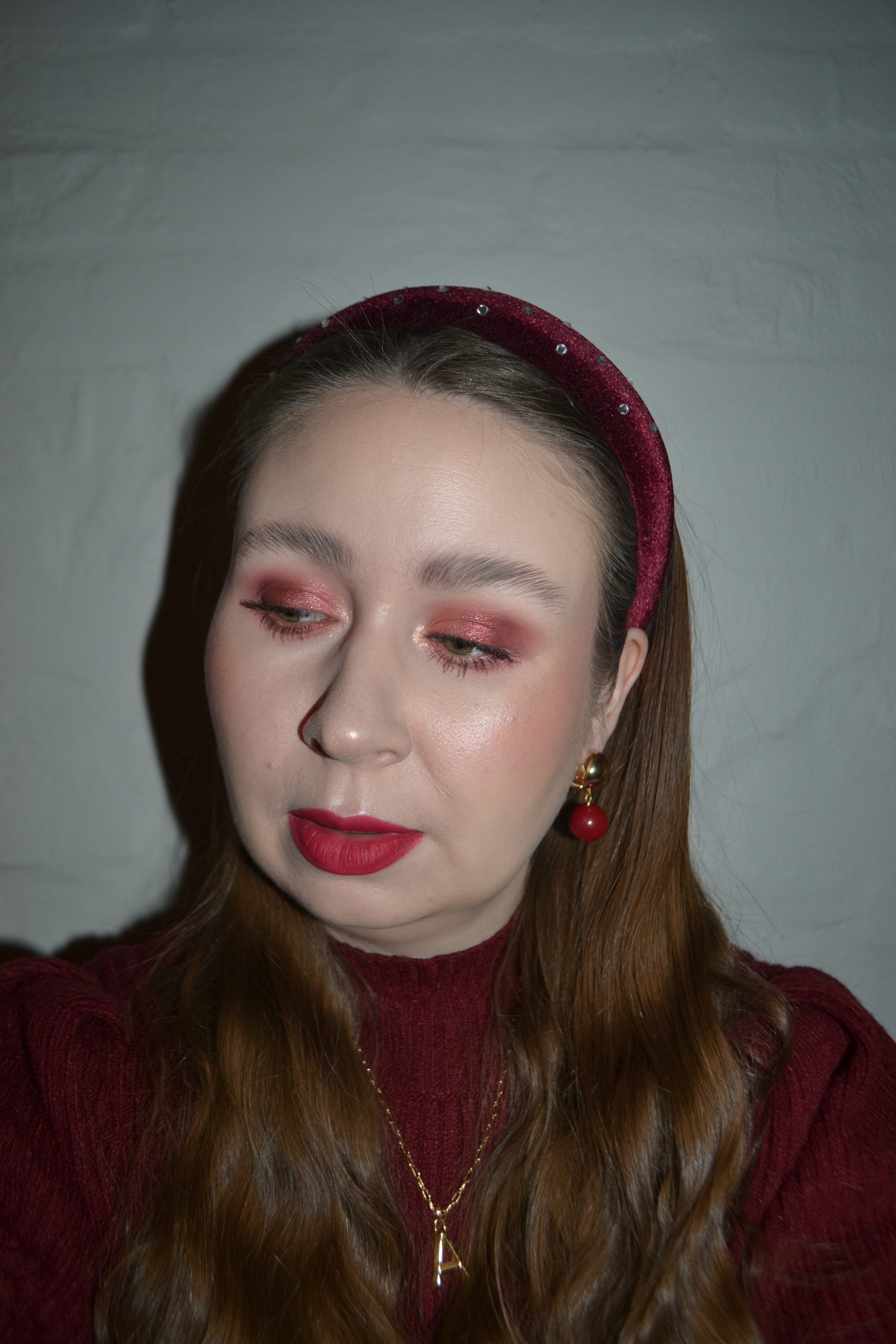 Here’s the make-up I wore with this outfit. Obviously, I had to continue with the monochromatic bordeaux/burgundy theme when it came to my make-up, and I think the look turned out very pretty.