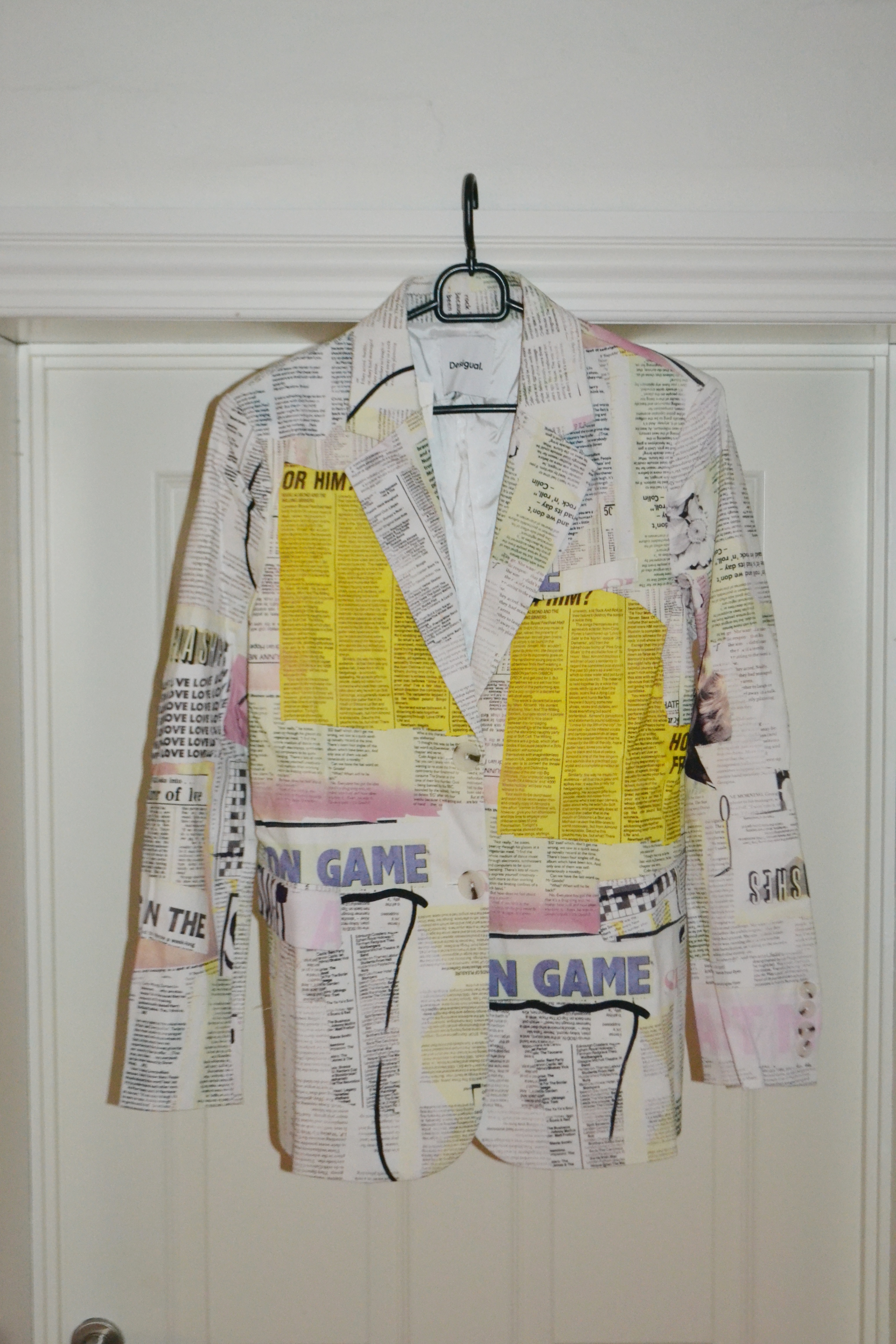 I also purchased this matching newspaper blazer and trousers set. I obviously can’t fit the trousers right now, but hopefully they will fit a some point.