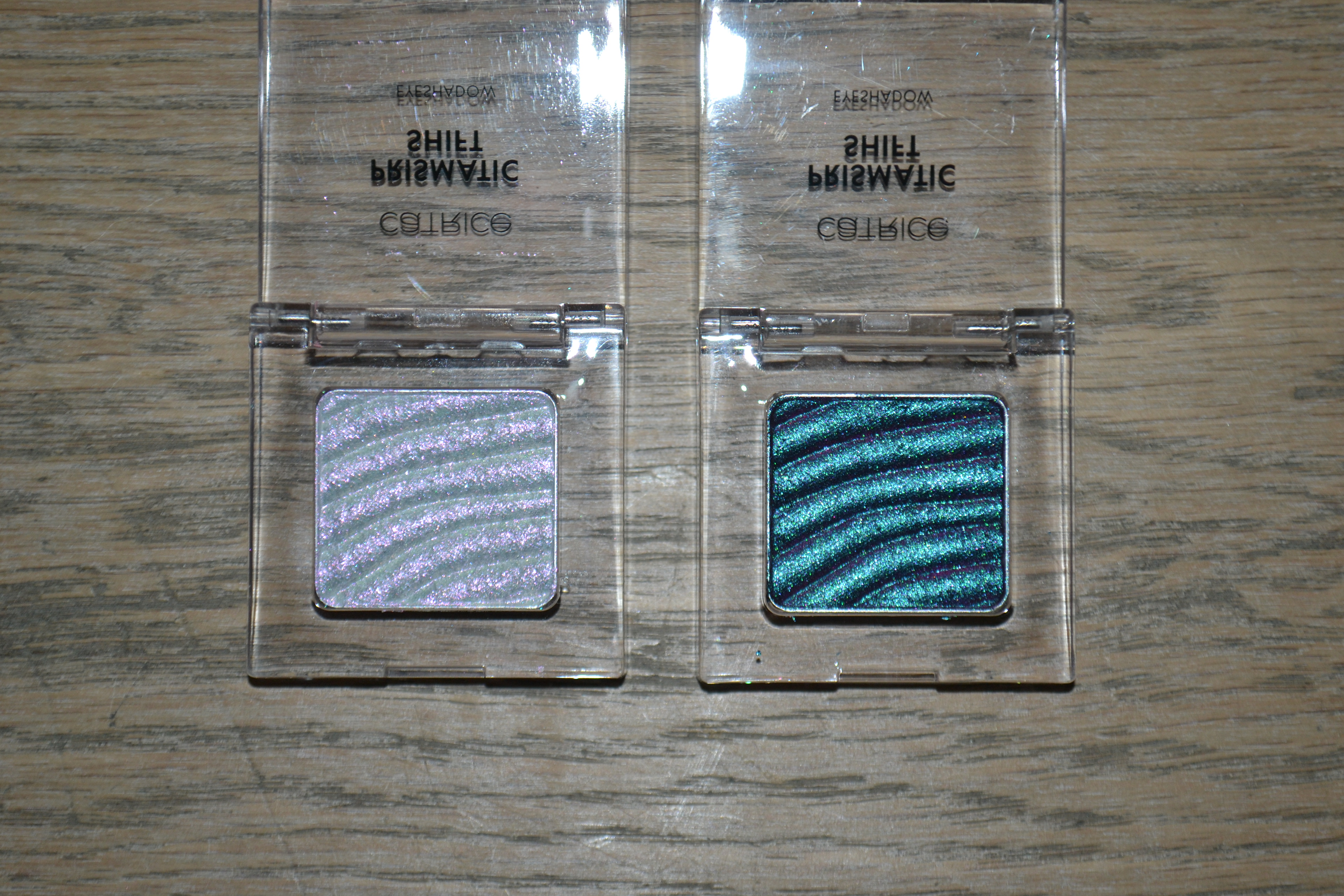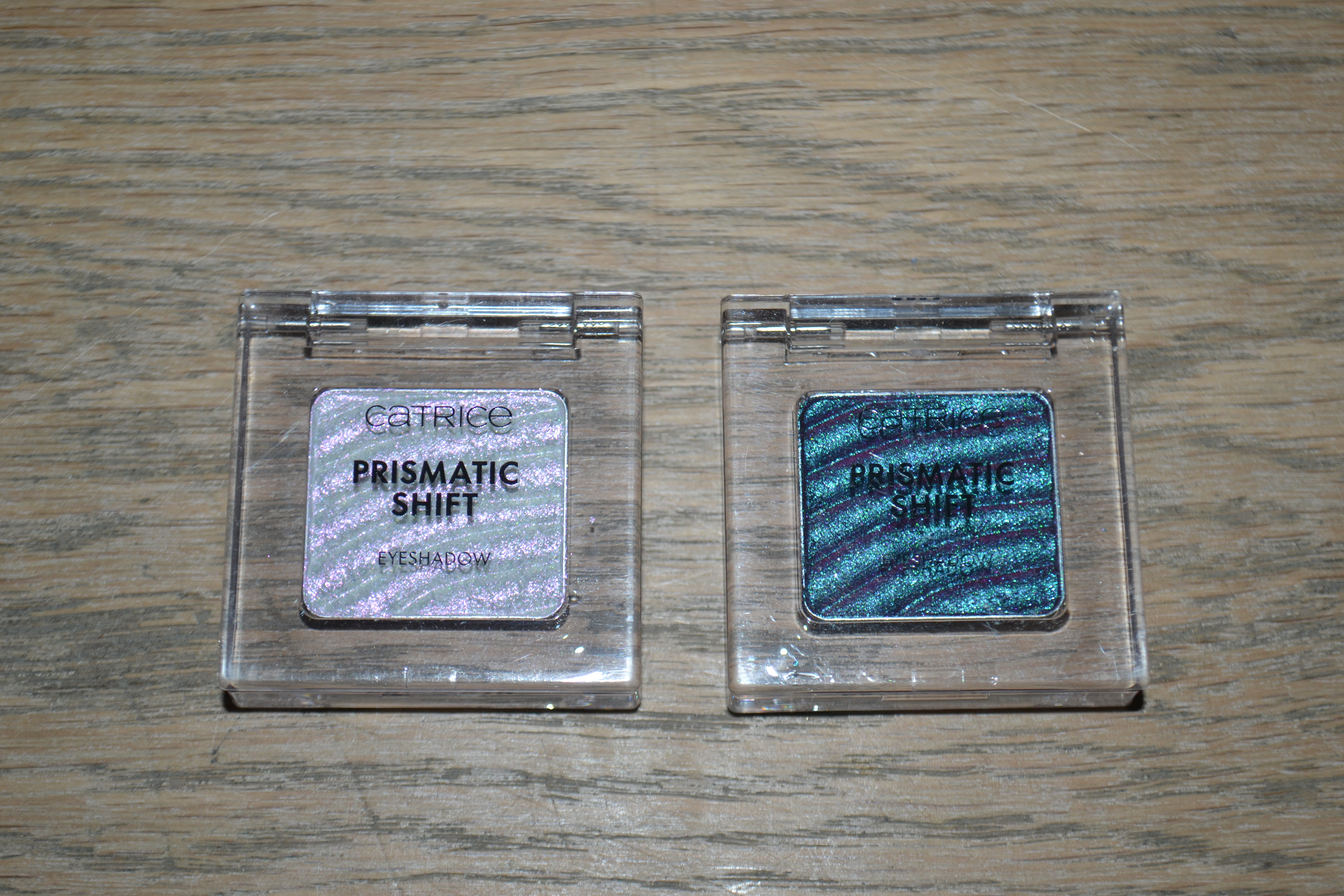 These are the Catrice Prismatic Shift eyeshadows in 010 Pink Horizon and 030 Midnight Wave. I really like when affordable make-up brands do shifty/multichrome eyeshadows, despite the fact that they’re not quite as good as indie ones.
