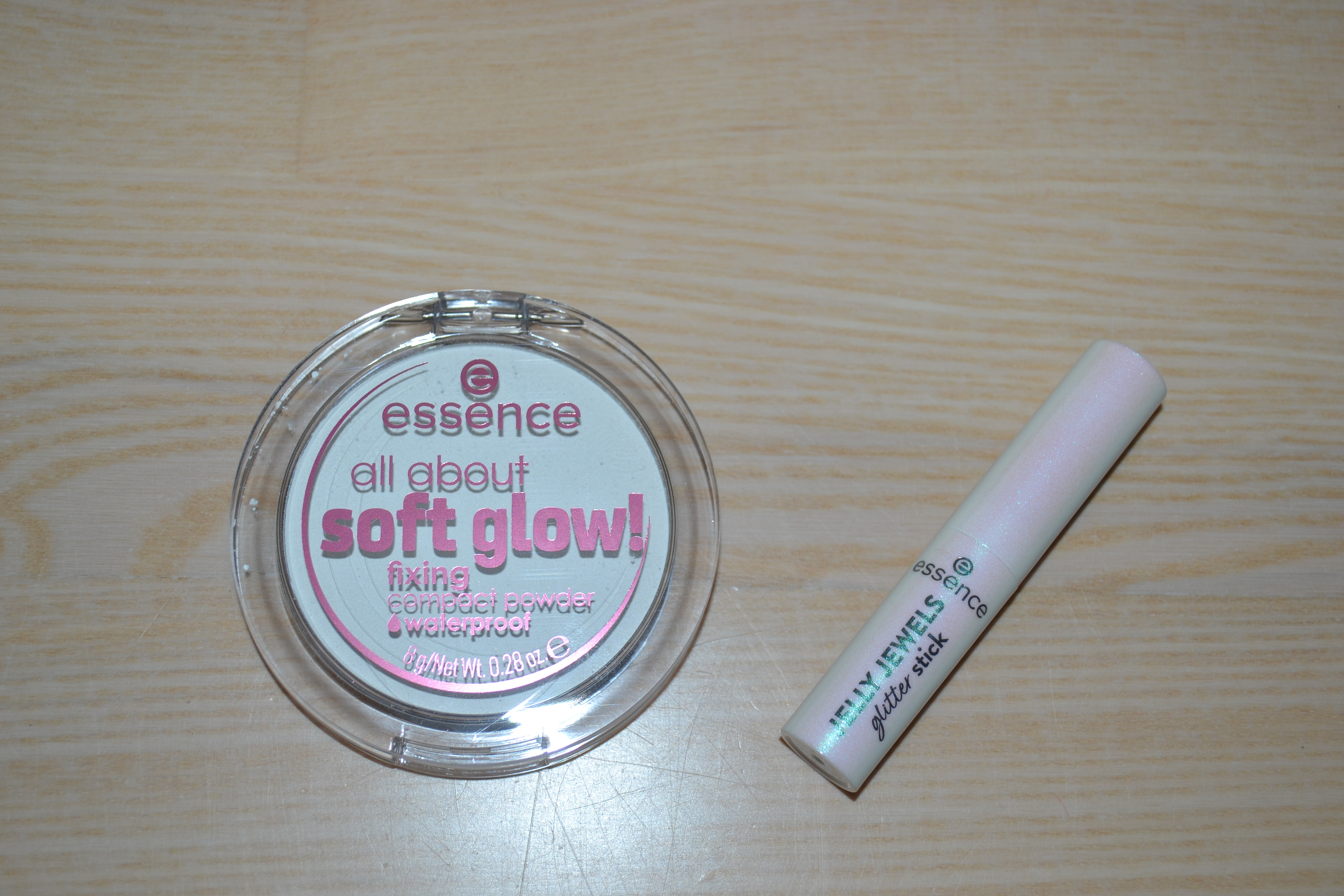 Let’s move on t0 the things I got from Essence. I bought the All About Soft Glow! fixing compact powder waterproof and the Jelly Jewels glitter stick in 02 Diamond Dust. I’ve been really into shadow sticks lately.