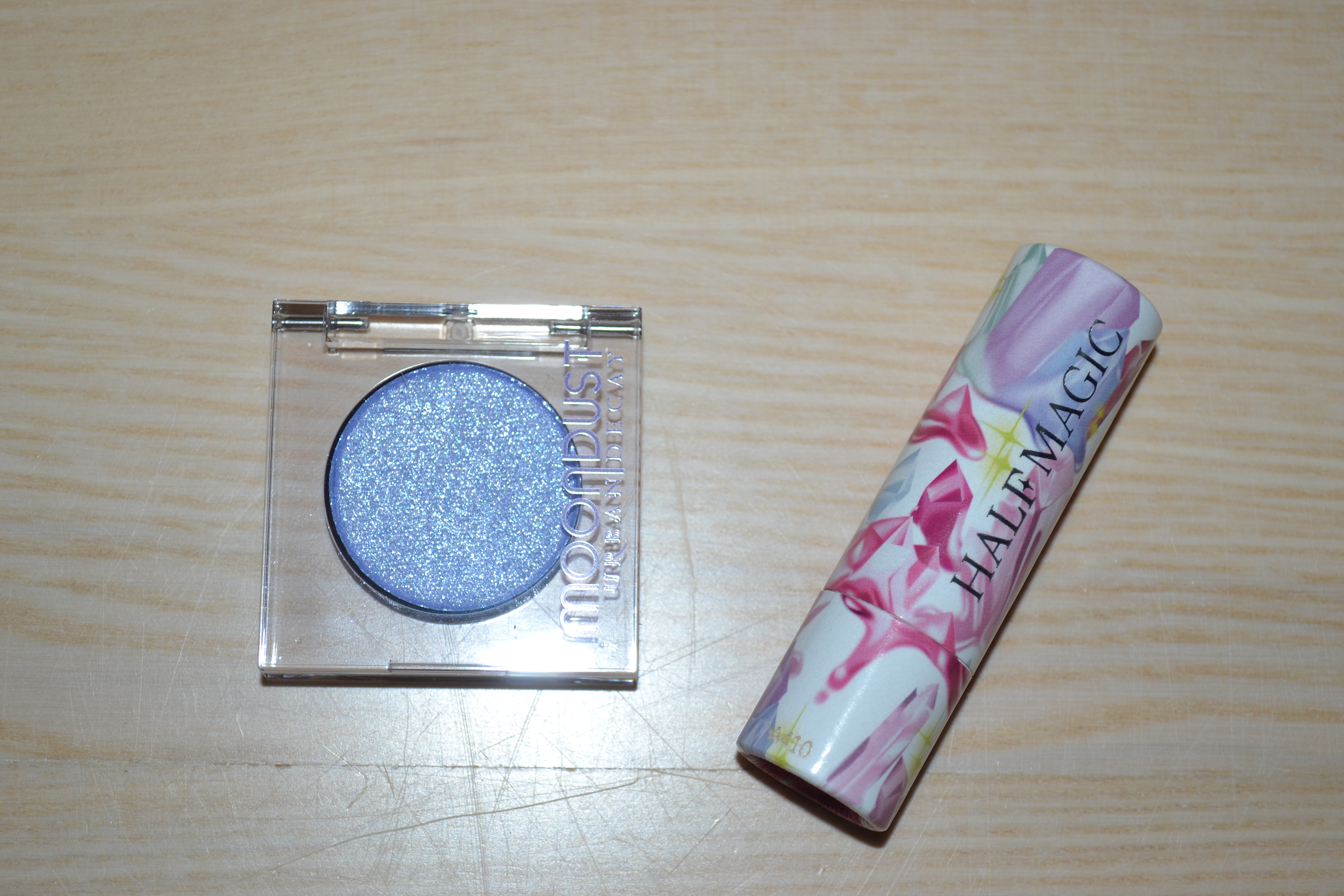 The last two products I bought were the Urban Decay Moondust eyeshadow in Headliner and the Half Magic Crystal Butter lip balm in Icon Aura. I like both of these products.