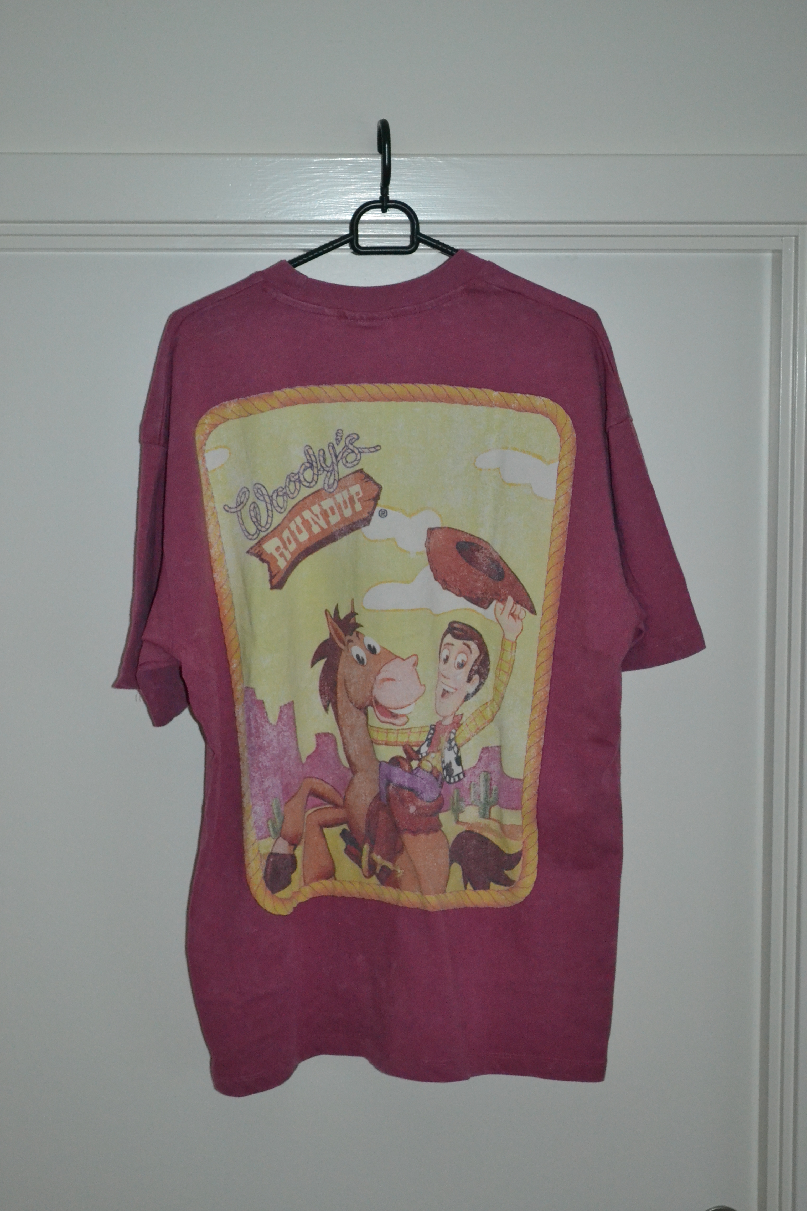 I love an oversized T-shirt, and luckily, it’s a type of item that I can still wear with my baby bump. Both of these are from Asos Design, and I’m actually wearing the one with the cherries today. I wanted to show you the back of the Toy Story one, because it’s so cute.